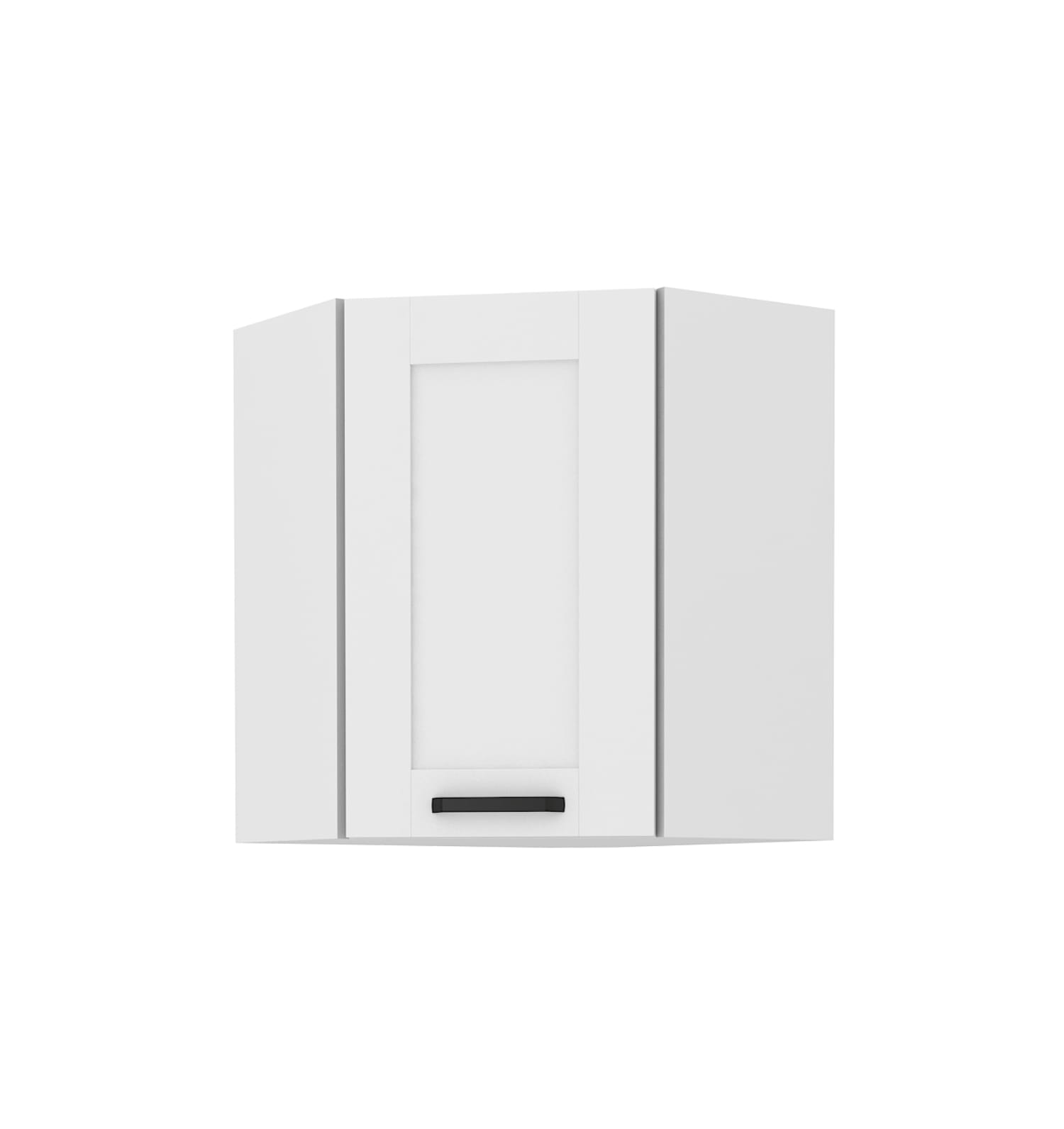 Luna biały/biały 60x60 GN-72 (45°) 1F - szafka narożna górna wisząca 60/60. Wyposażona została w front rozchylny na boki.