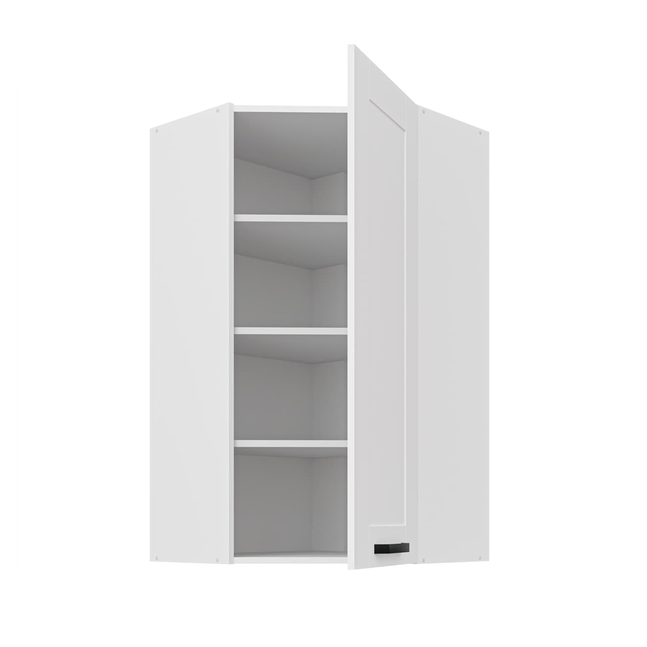 Luna biały/biały 60x60 GN-108 (45°) 1F - szafka narożna górna wisząca 60/60. Wyposażona została w jeden front i trzy półki.