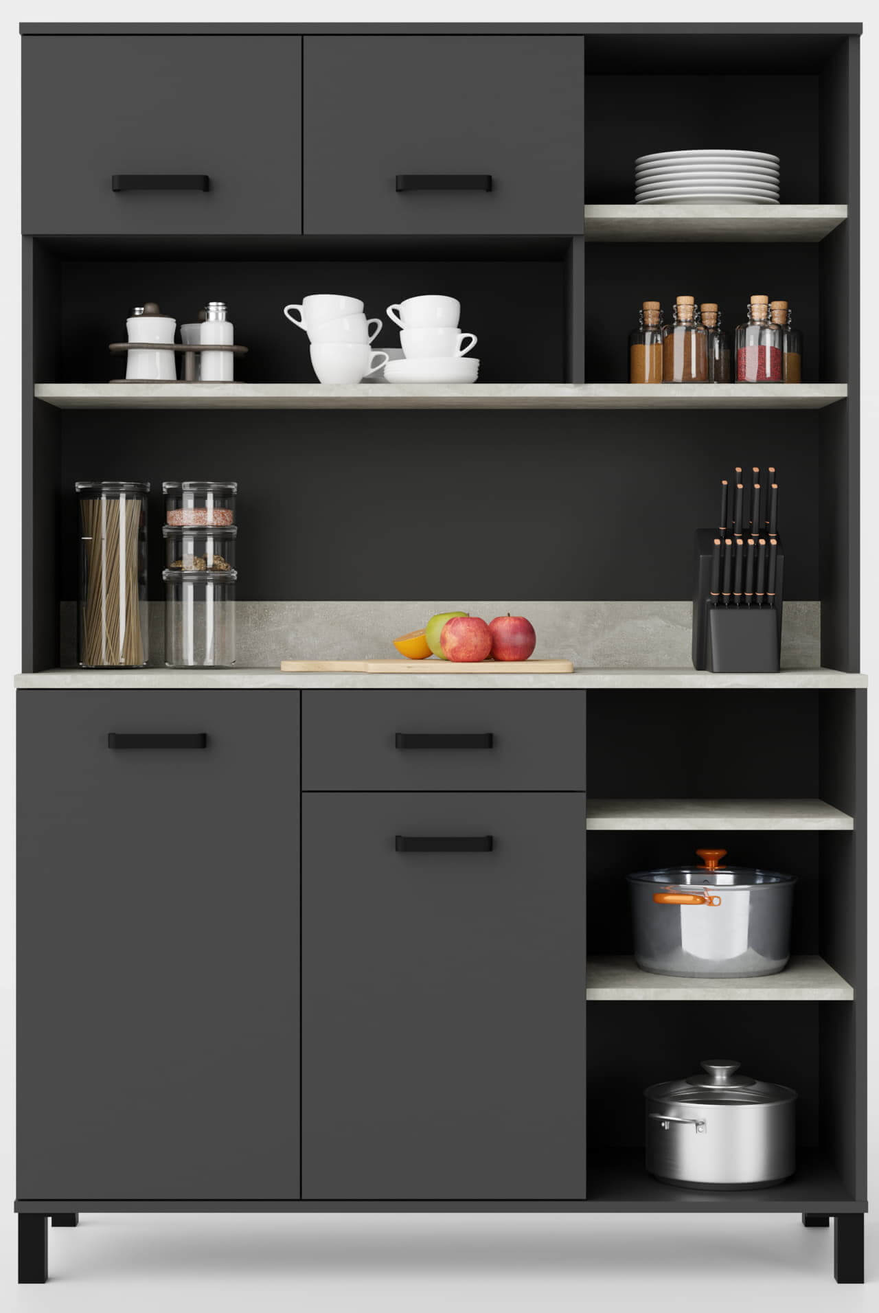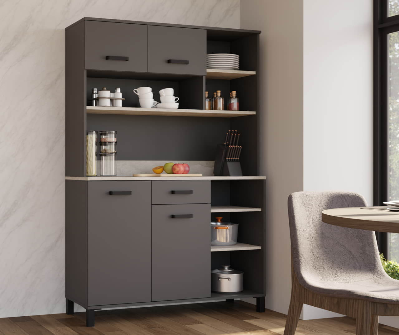Bufet kuchenny Linda w kolorze antracytowym to doskonały wybór dla osób, które cenią eleganckie, nowoczesne rozwiązania i chcą, aby ich kuchnia wyróżniała się stylem oraz klasą.