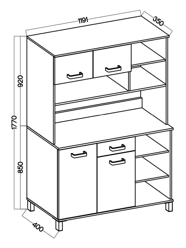 Bufet 120 cm – większa opcja w zestawie, zapewniająca jeszcze więcej przestrzeni do przechowywania. Idealny do większych kuchni lub jako centralny punkt w przestrzeniach, które potrzebują dodatkowego miejsca na naczynia, sprzęt kuchenny czy dekoracje. Wysoka jakość wykonania gwarantuje trwałość i elegancki wygląd przez lata.