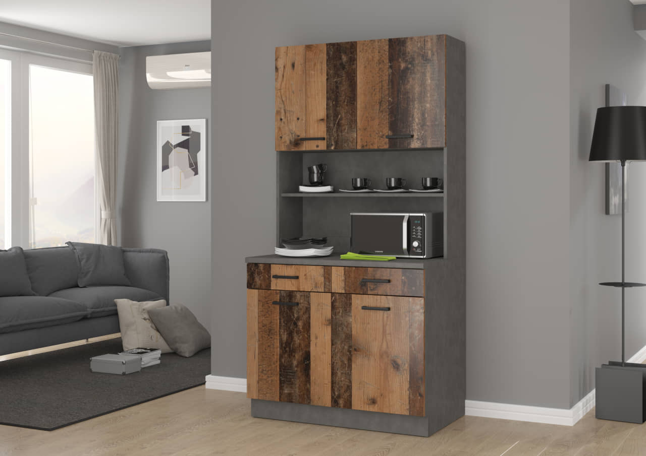 Bufet Maria to idealna propozycja dla osób chcących zaaranżować mały aneks kuchenny w mieszkaniu bądź domku na działce. Optymalne rozmieszczenie półek oraz dwie wysuwane szuflady zdecydowanie ułatwią organizację powierzchni w kuchni.
