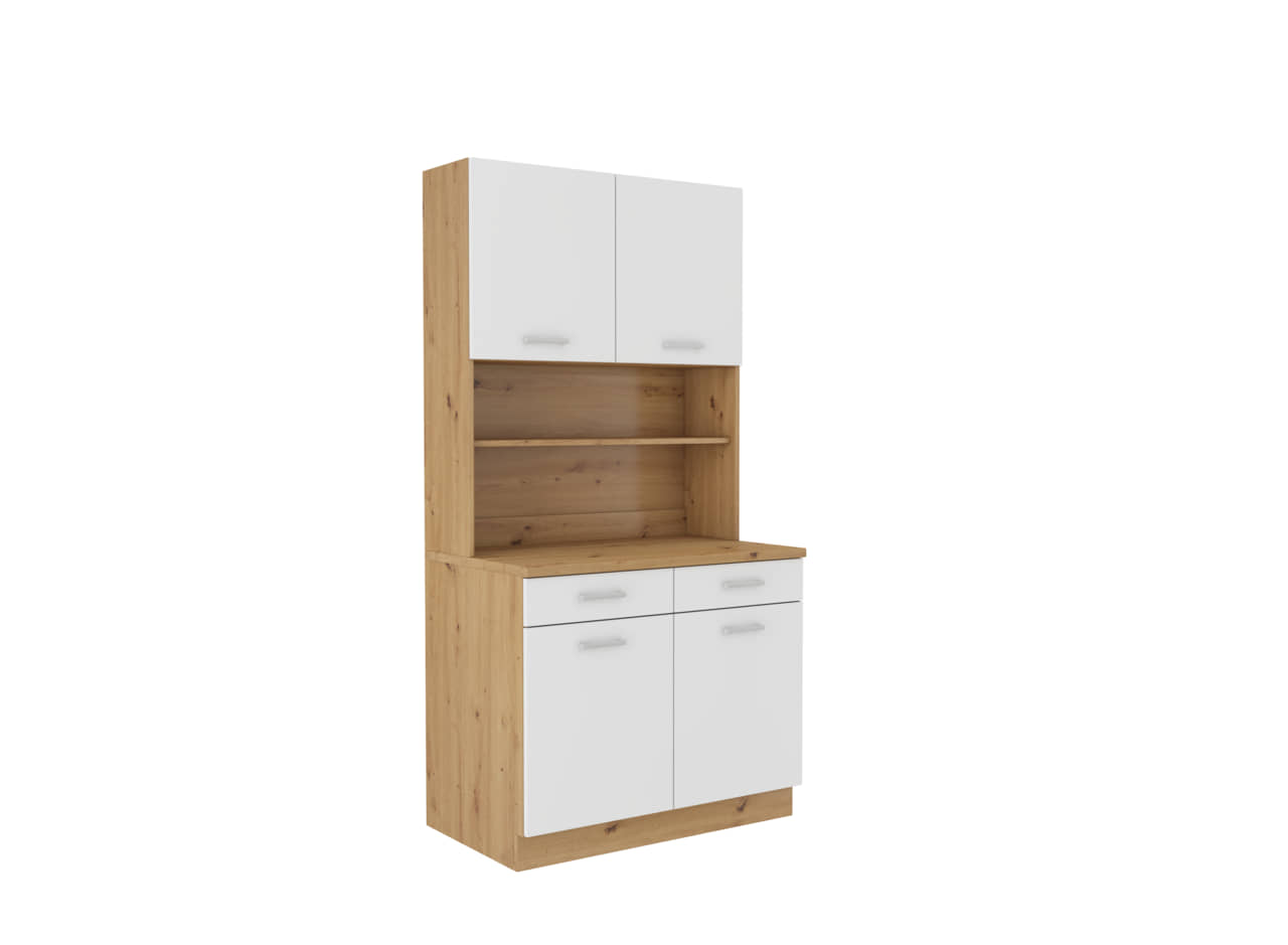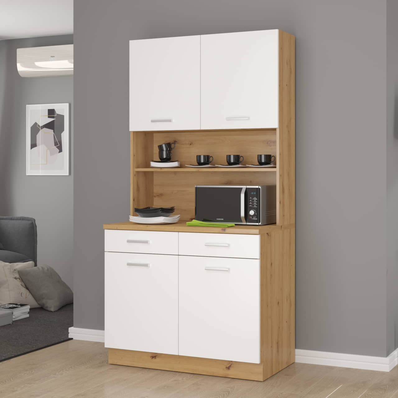 Bufet Maria to idealna propozycja dla osób chcących zaaranżować mały aneks kuchenny w mieszkaniu bądź domku na działce. Optymalne rozmieszczenie półek oraz dwie wysuwane szuflady zdecydowanie ułatwią organizację powierzchni w kuchni.