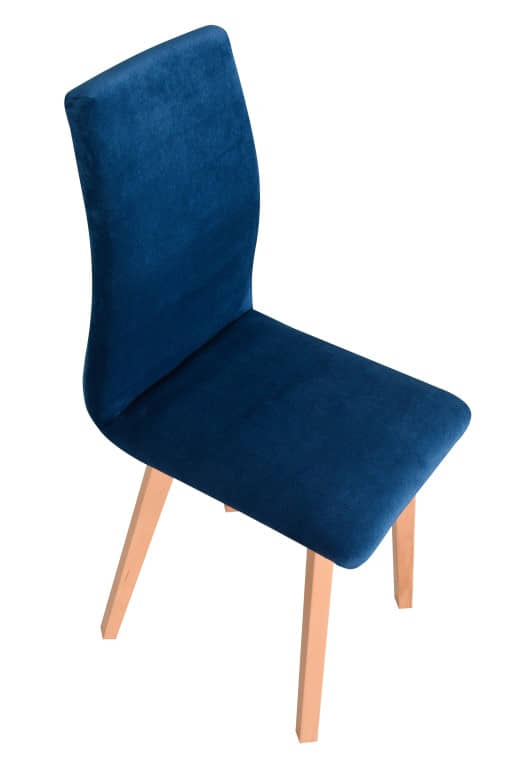Fotel drewniany Luna 2 z tapicerowanym siedziskiem oraz oparciem.