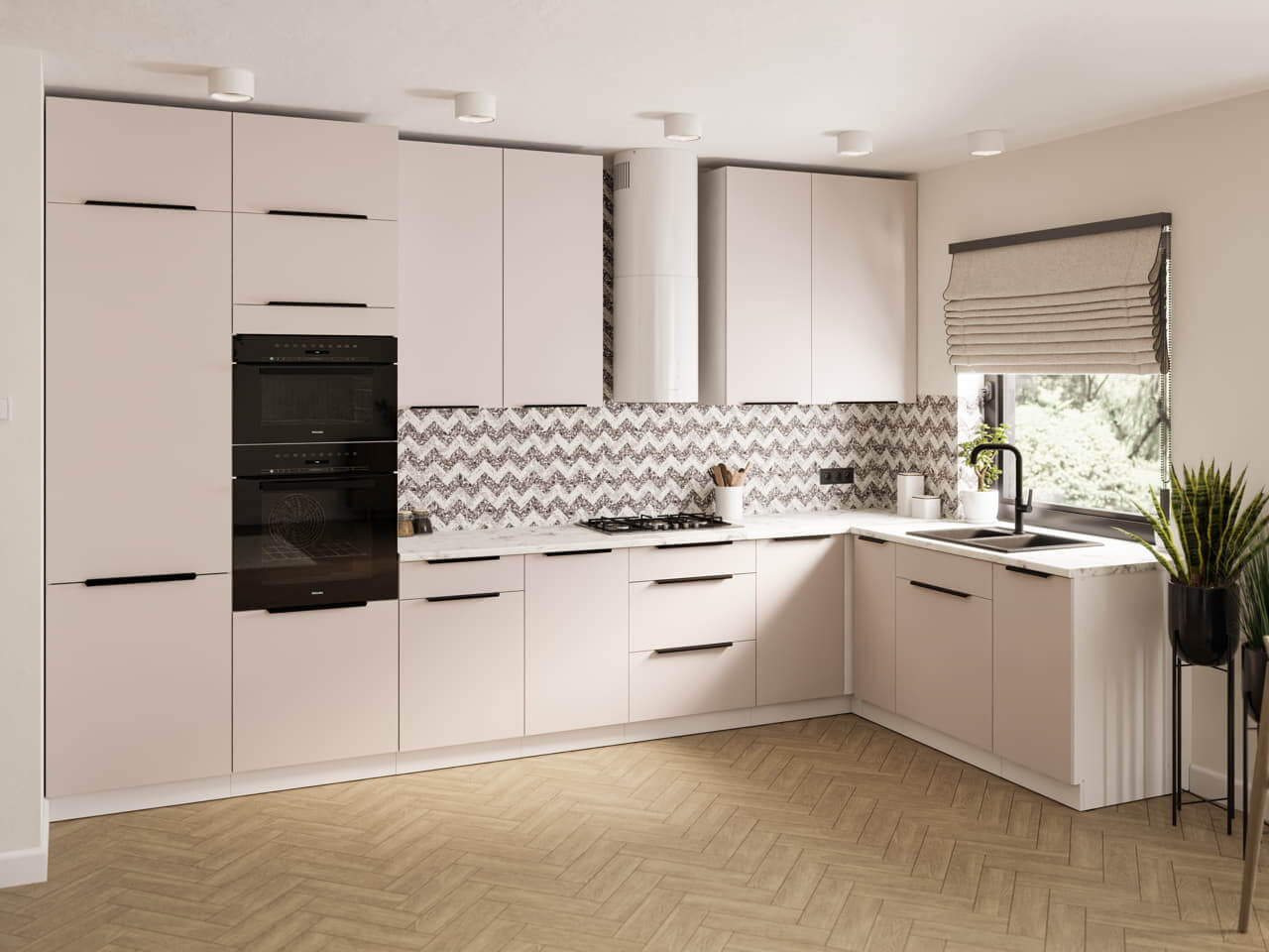 Kolekcja kuchni Como to harmonijne połączenie subtelnej elegancji i nowoczesnej funkcjonalności. Białe korpusy wprowadzają do wnętrza lekkość i świeżość, stanowiąc doskonałe tło dla stylowych, kaszmirowych frontów. Ten delikatny, ciepły odcień nadaje kuchni przytulnego charakteru, jednocześnie zachowując jej minimalistyczny i ponadczasowy wygląd.