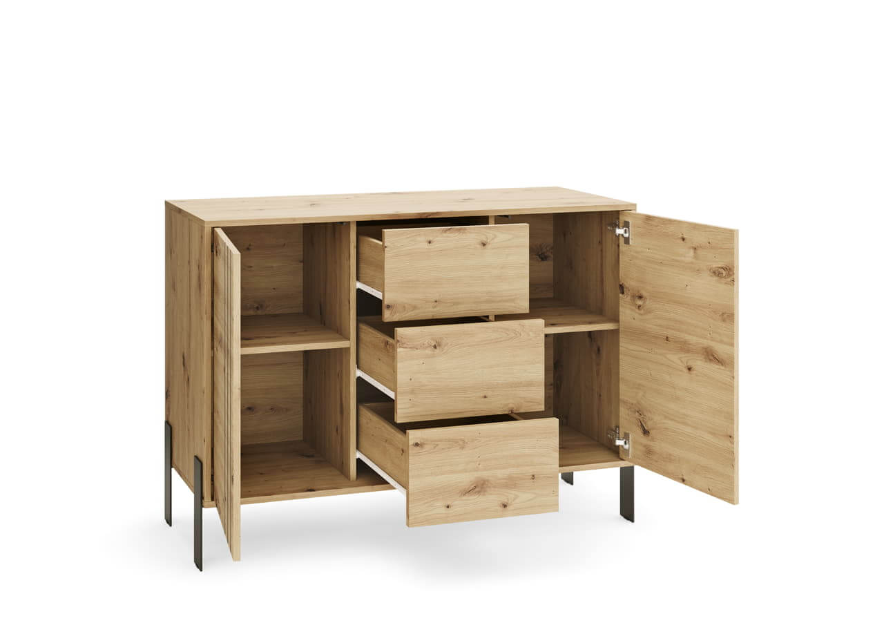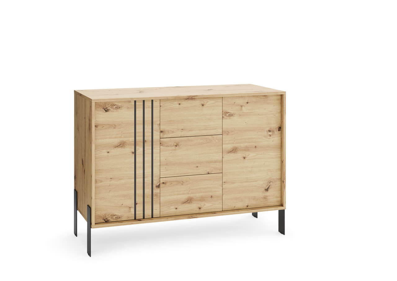 Kolekcja meblowa Nexo to harmonijne połączenie nowoczesnego wzornictwa i funkcjonalności, stworzone z myślą o stylowym salonie. W jej skład wchodzą komody, szafka RTV oraz stolik kawowy, które pozwalają na stworzenie spójnej i eleganckiej aranżacji wnętrza.