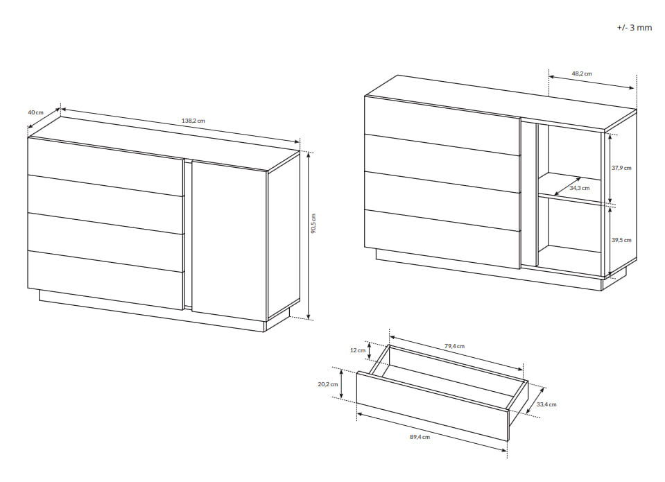 - 4x szuflady, 1x drzwi