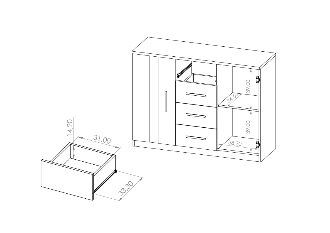 - 4x szuflada,