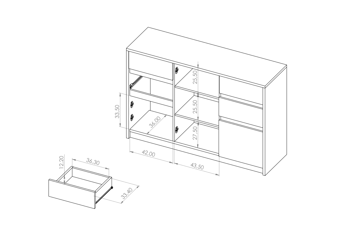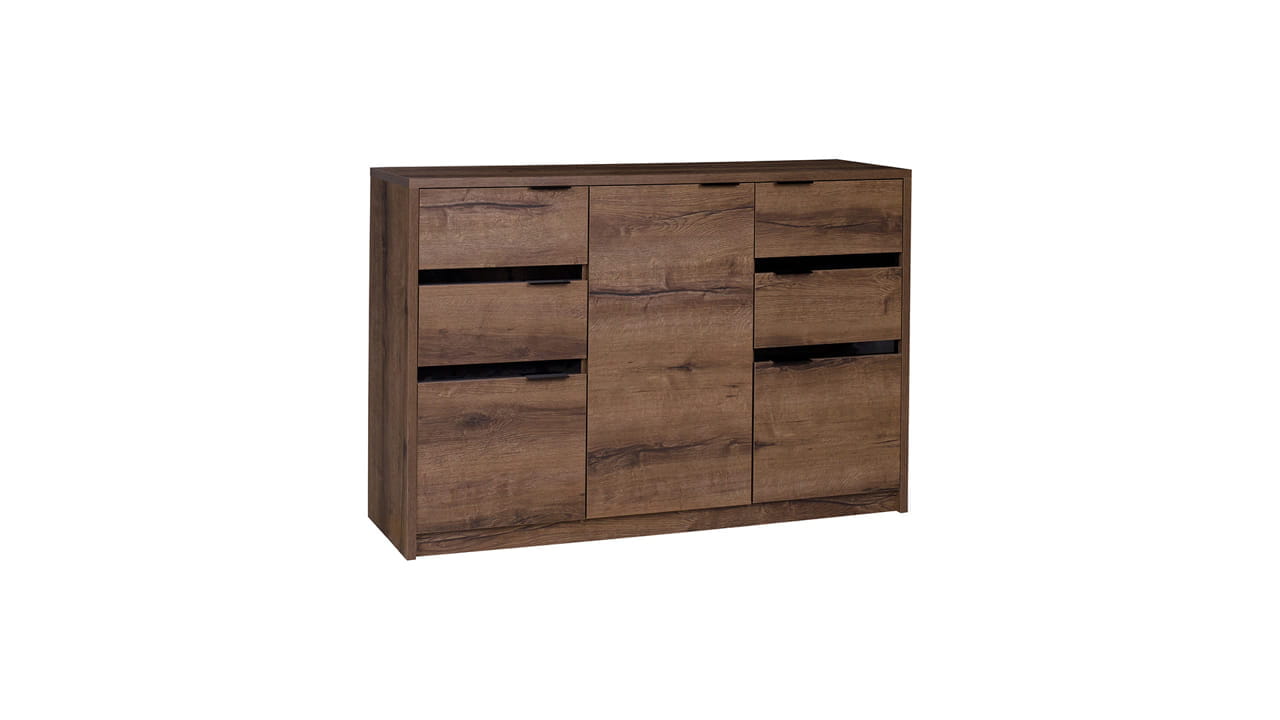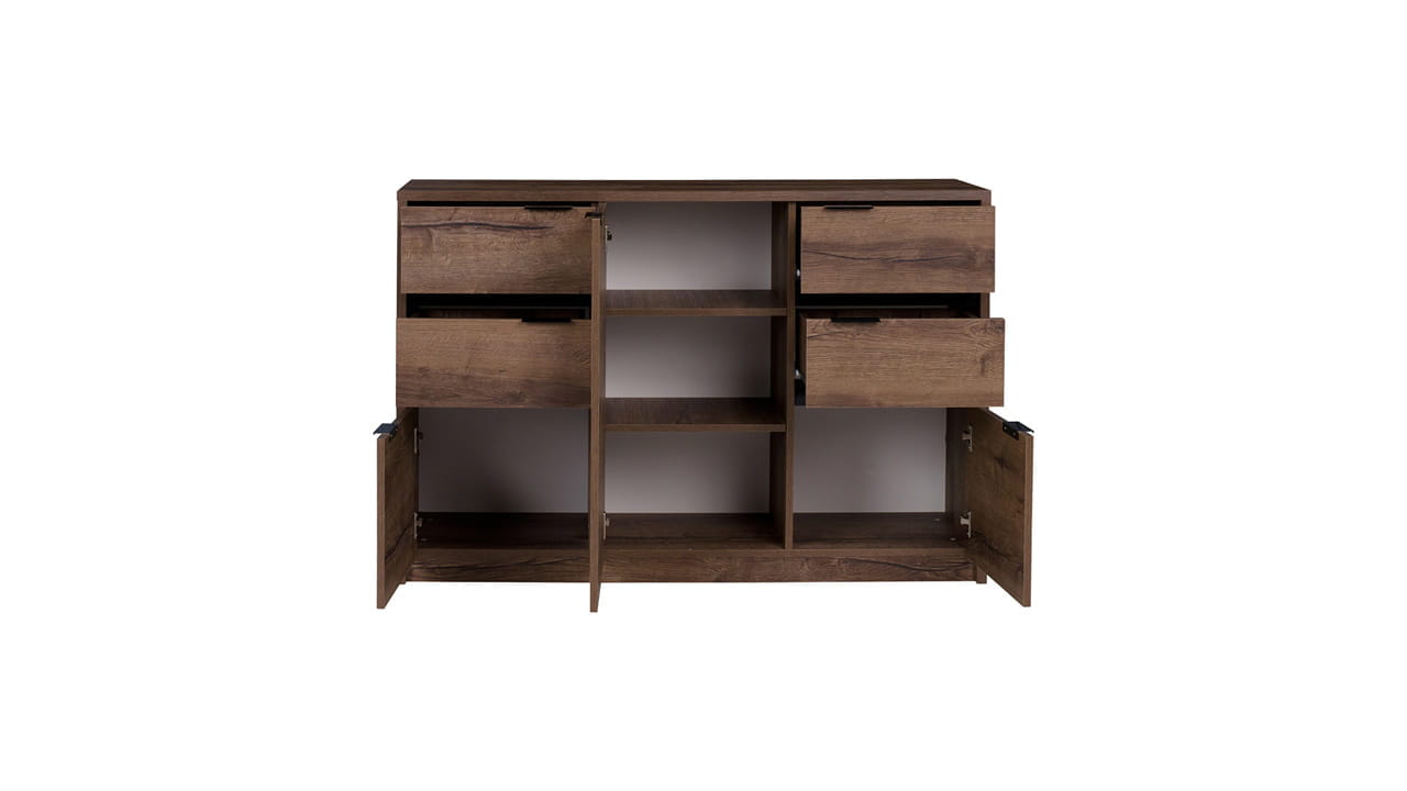 Komoda Denver K3D4SZ wyposażona została w troje drzwi oraz cztery szuflady.
