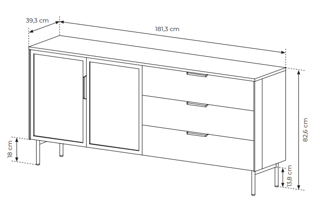 Komoda LUMI 181 cm 2D3S dąb dunin/ czarny