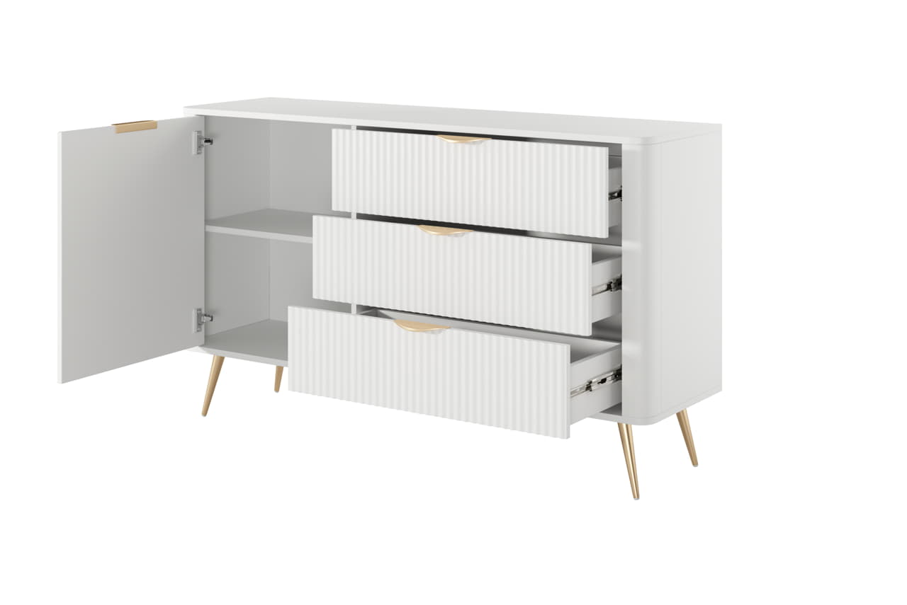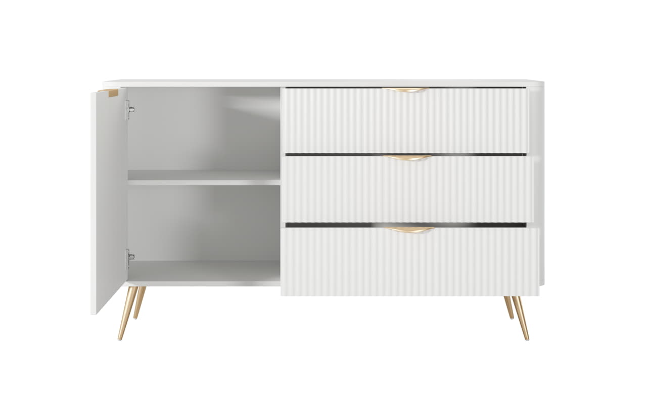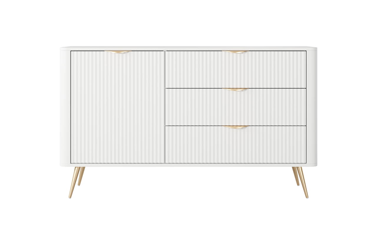 Charakterystycznym elementem kolekcji są wysokie, metalowe nóżki, które nadają bryłom lekkości oraz ułatwiają utrzymanie czystości w pomieszczeniu. Do wyboru są dwie wersje wykończenia detali – elegancka czerń lub szlachetne złoto – w postaci nóg i uchwytów, które stanowią wyrafinowane dopełnienie całości.
