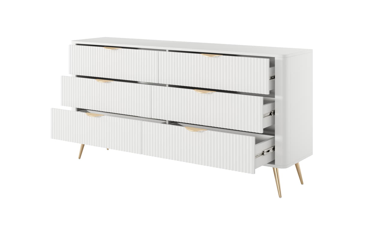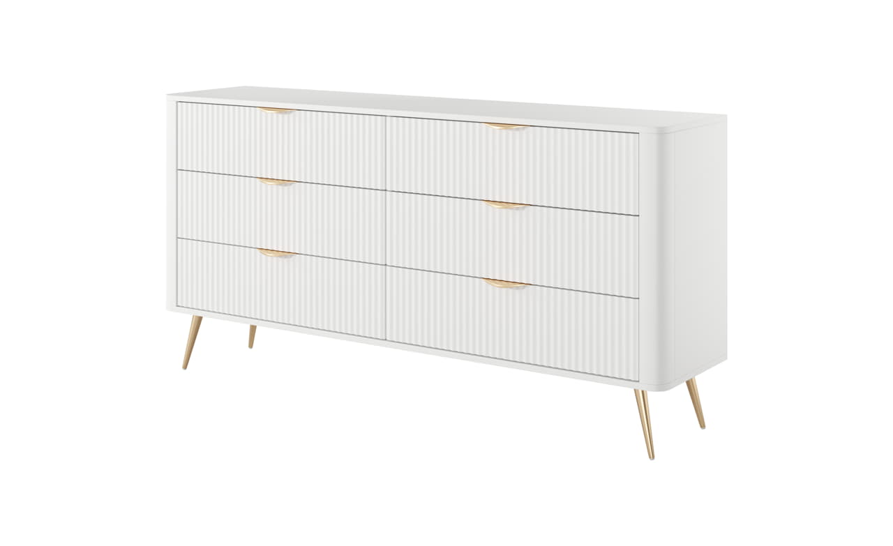 Kolekcja LANTE to połączenie nowoczesnej elegancji i praktycznych rozwiązań do współczesnych wnętrz. Jej wyróżnikiem jest charakterystyczny, frezowany front z subtelnym, pionowym ryflowaniem, który dodaje meblom wyjątkowej lekkości i designu premium. Delikatnie zaokrąglone krawędzie brył nadają im miękkości, a wysokie, smukłe nóżki wprowadzają do wnętrza nutę stylu retro i zapewniają wygodę w codziennym użytkowaniu.
