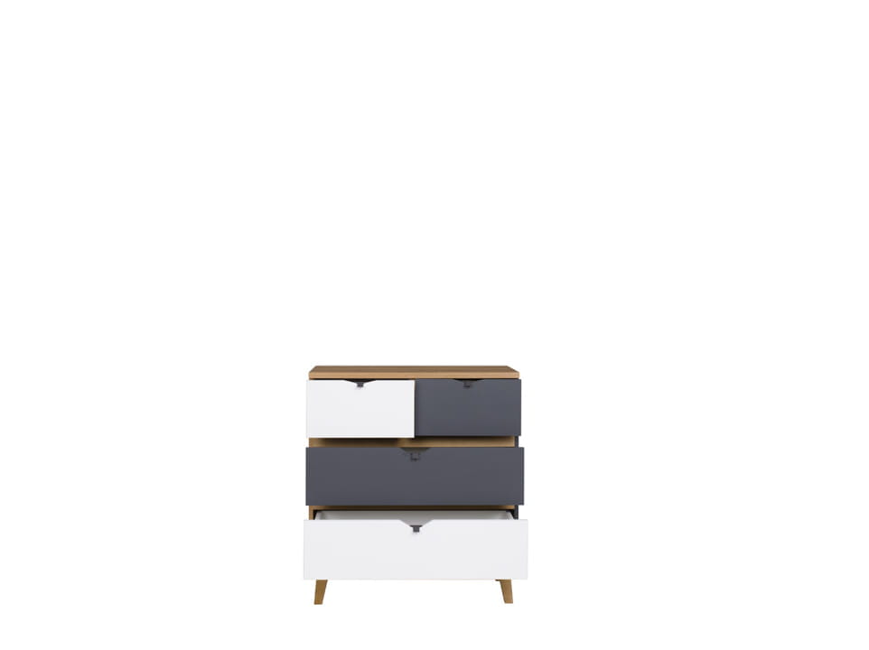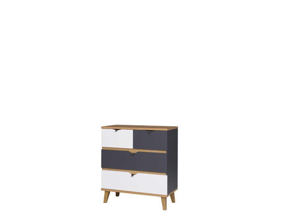 Kolekcja Memone to funkcjonalne meble do pokoju młodzieżowego. System charakteryzuje stylowe zestawienie wybarwień oraz połączenie metalowych uchwytów z wycięciami we frontach. Memone dostępne jest w kolorystyce głównej dąb złoty oraz dąb biały.