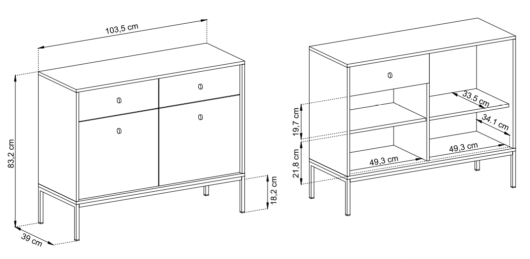 Komoda Mono wyposażona została w dwie szuflady oraz dwa uchylne fronty. Ciekawy design wkomponuje się w każde wnętrze nadając mu delikatności oraz stylu.