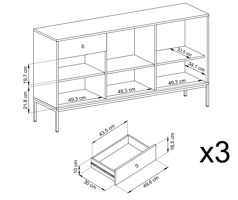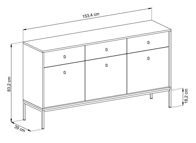 Komoda Mono wyposażona została w trzy szuflady oraz trzy uchylne fronty. Ciekawy design wkomponuje się w każde wnętrze nadając mu delikatności oraz stylu.