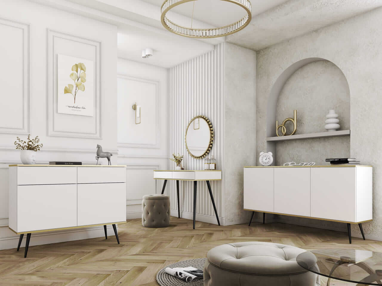 Ponadto kolekcja Oro idealnie wkomponuje się w elegancki salon, przedpokój czy biuro, tworząc przestrzeń pełną harmonii i luksusu.