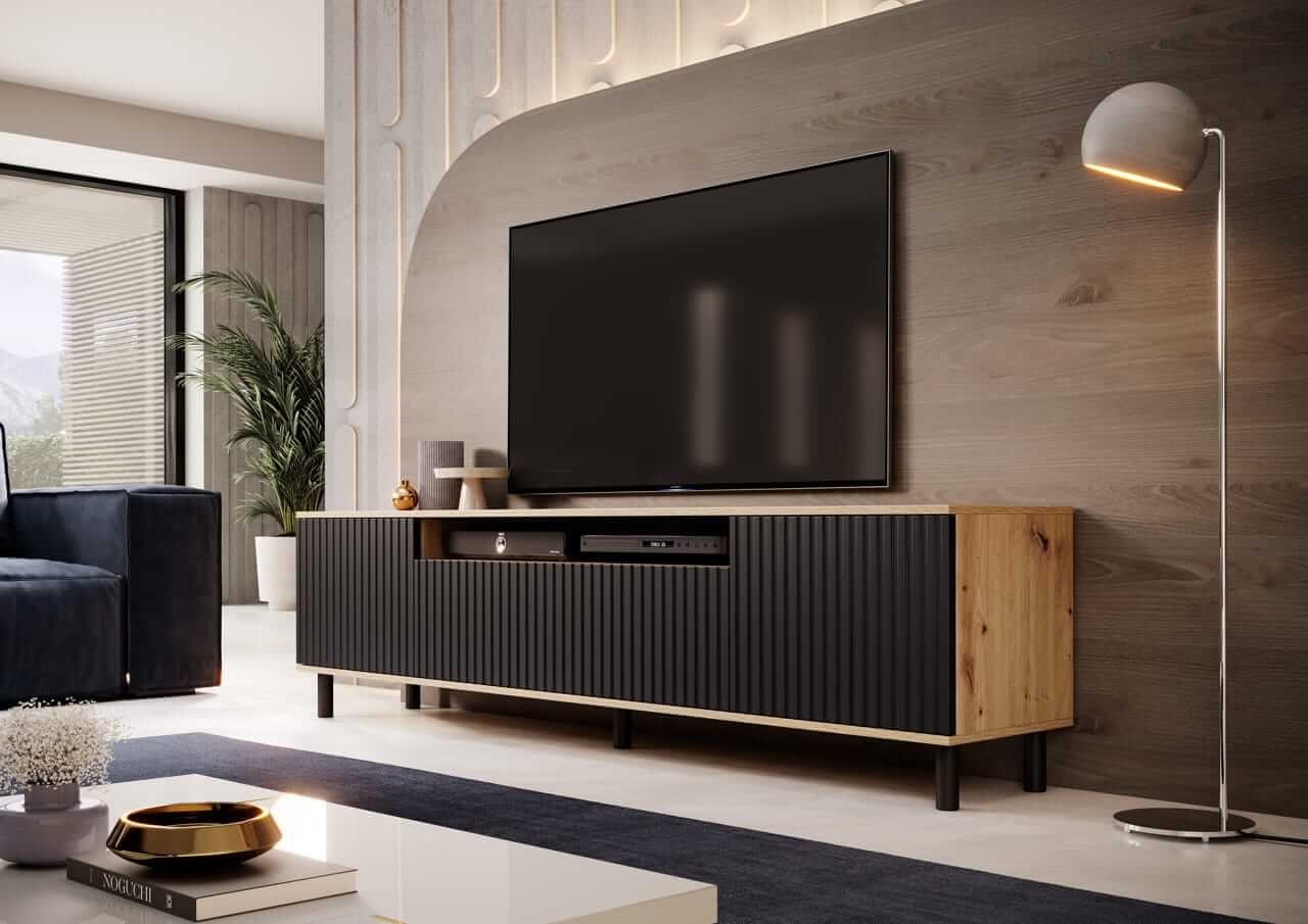 Komoda RTV Agnes artisan/czarny na nóżkach