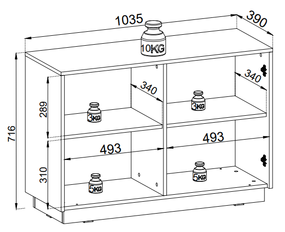 - Wykonanie korpusu: płyta wiórowa laminowana - 16mm,