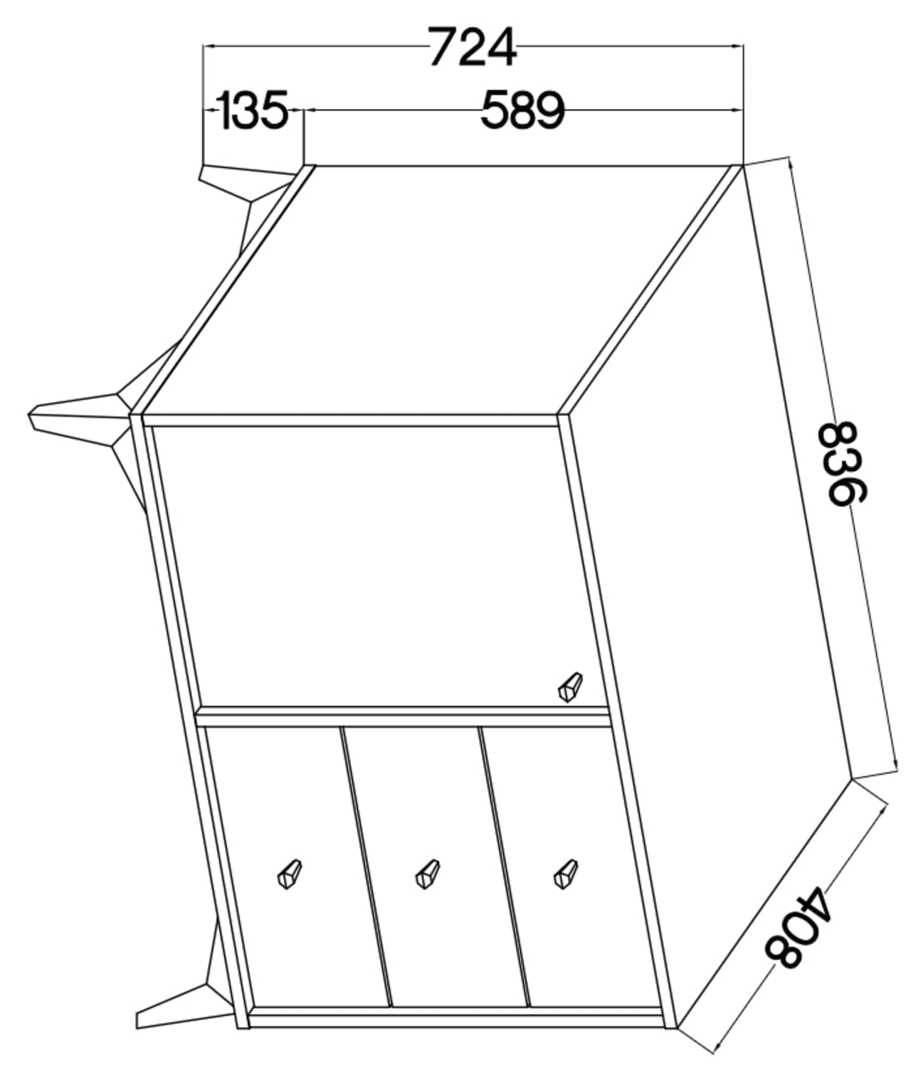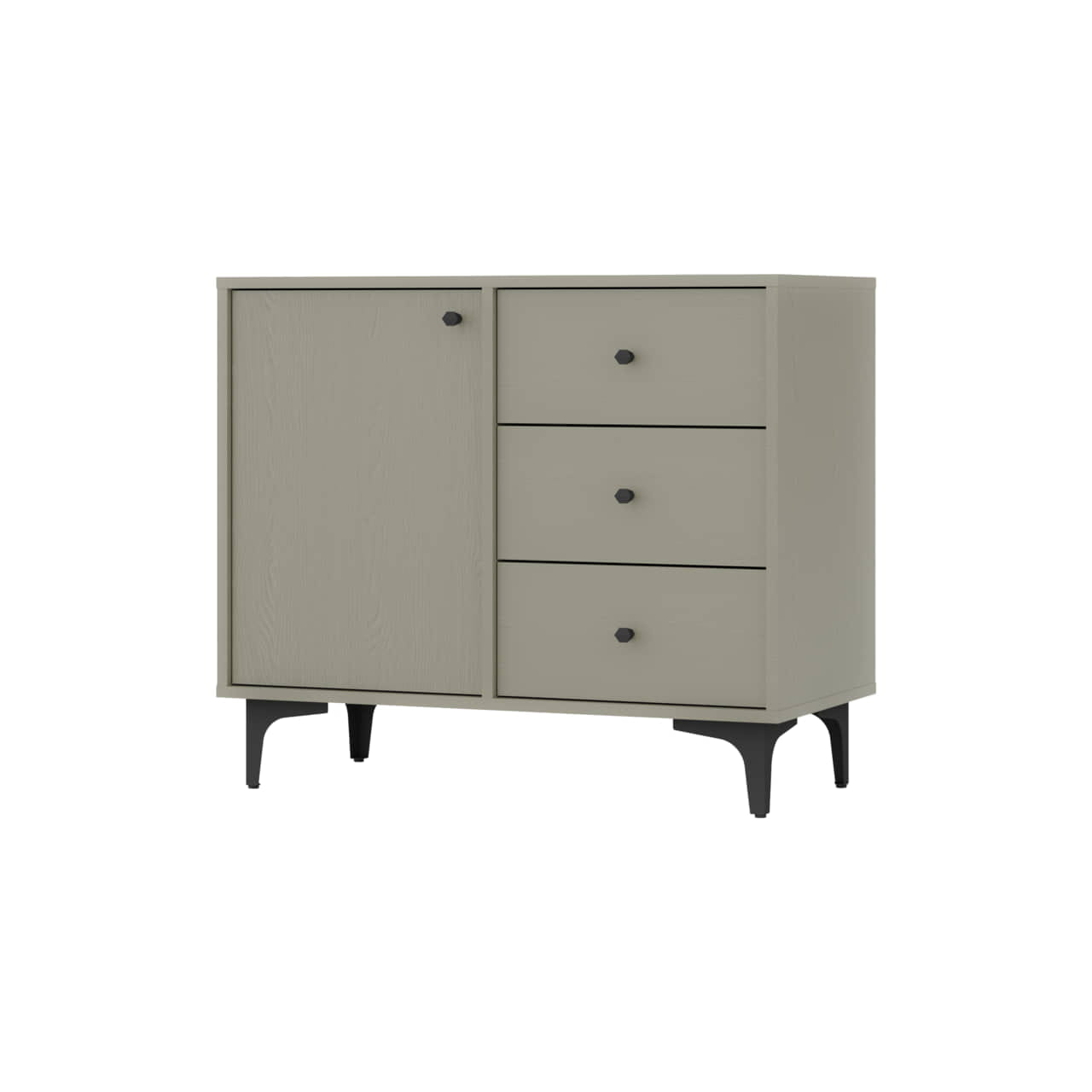 Komoda Tokio 1F3S wyposażona została w front rozchylny oraz trzy wysuwane szuflady.