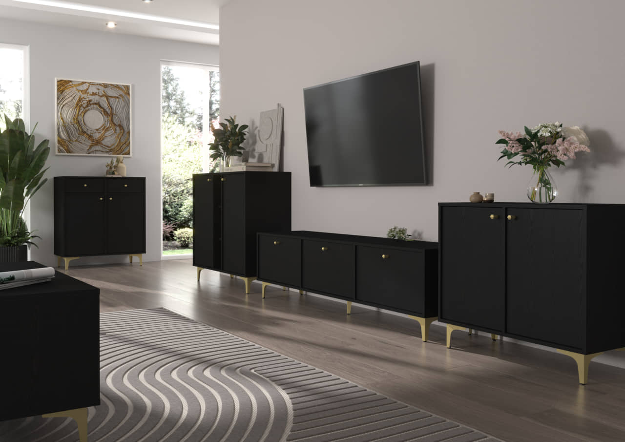 Komoda Tokio 2F2S czarny grafit noga rozgwiazda
