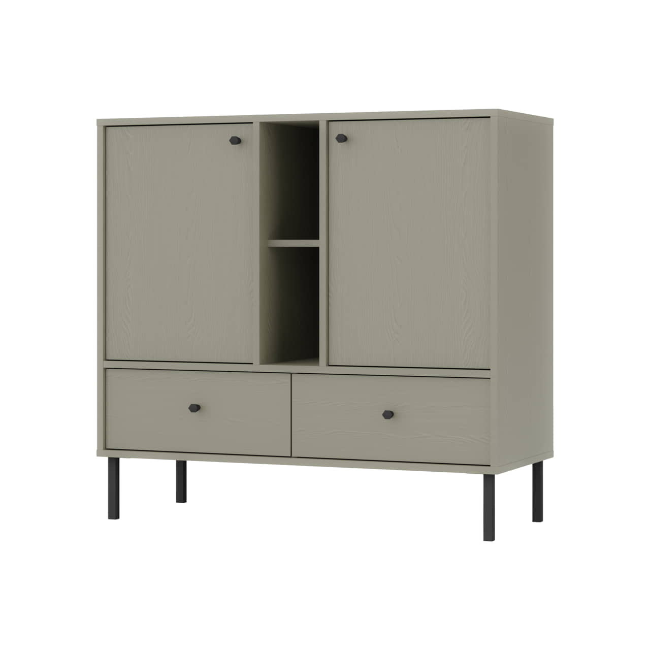 Komoda Tokio 2F2S wyposażona została w dwa fronty rozchylne oraz dwie wysuwane szuflady.