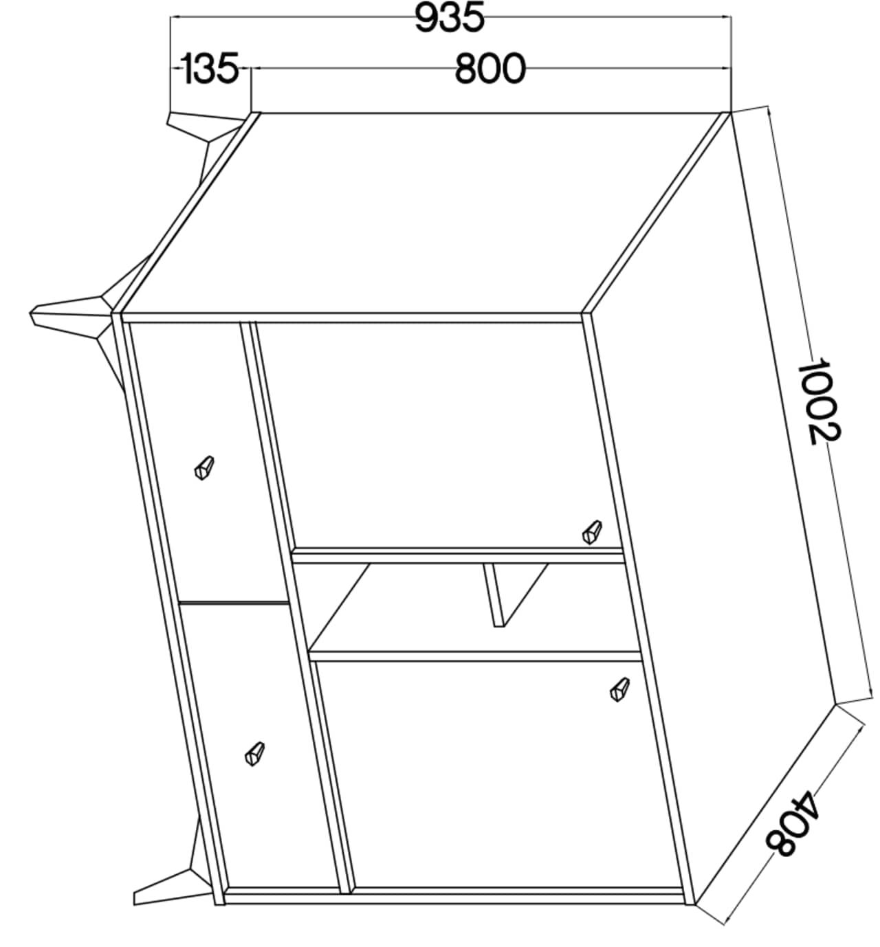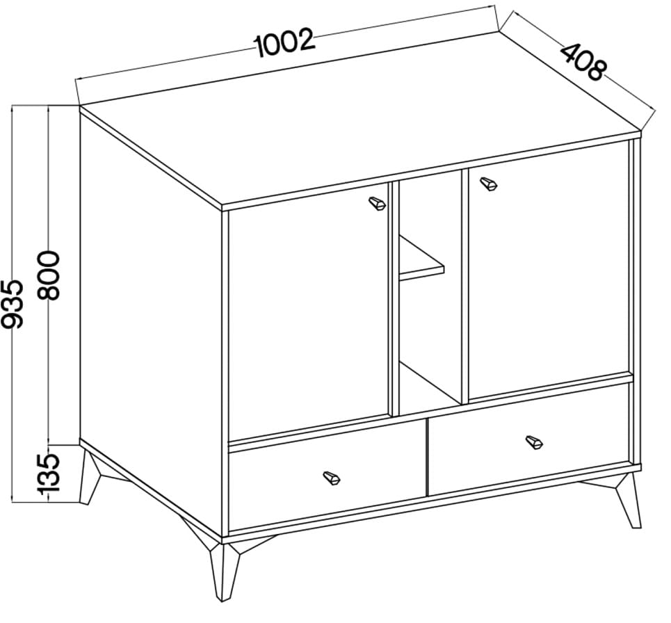 Komoda Tokio 2F2S wyposażona została w dwa fronty rozchylne oraz dwie wysuwane szuflady.