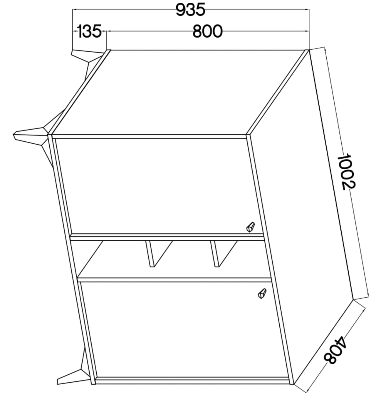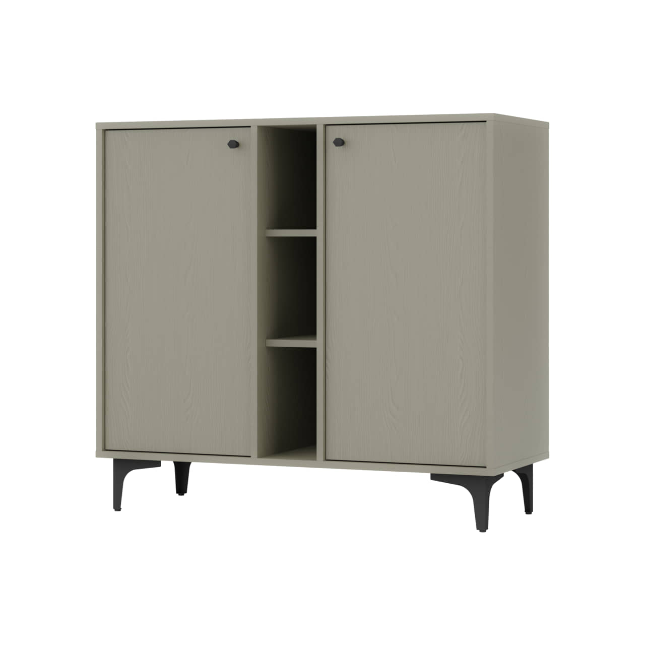 Komoda Tokio 2FO wyposażona została w dwa fronty rozchylne oraz otwarte półki.