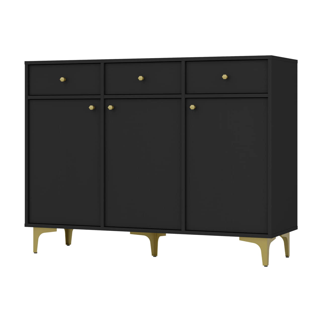 Komoda Tokio 3F3S czarny grafit noga rozgwiazda