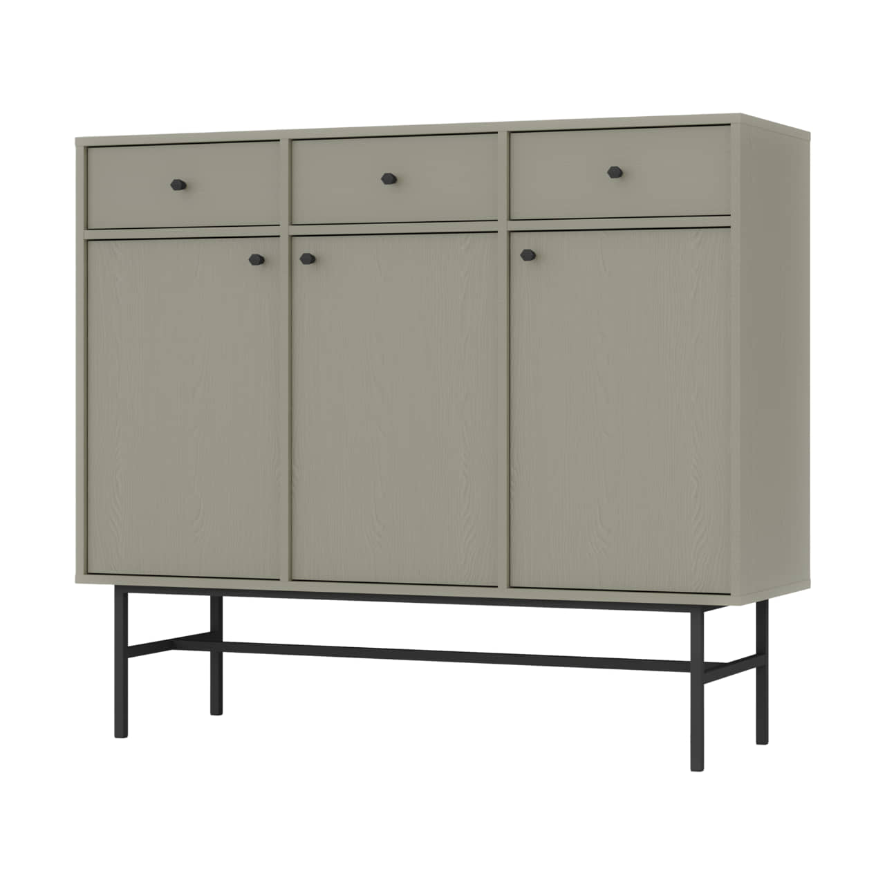 Komoda Tokio 3F3S wyposażona została w trzy fronty rozchylne oraz trzy wysuwane szuflady.