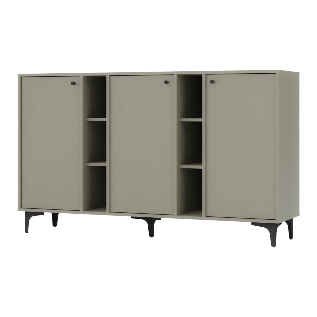 Komoda 3FO wyposażona została w trzy fronty rozchylne oraz półki otwarte.