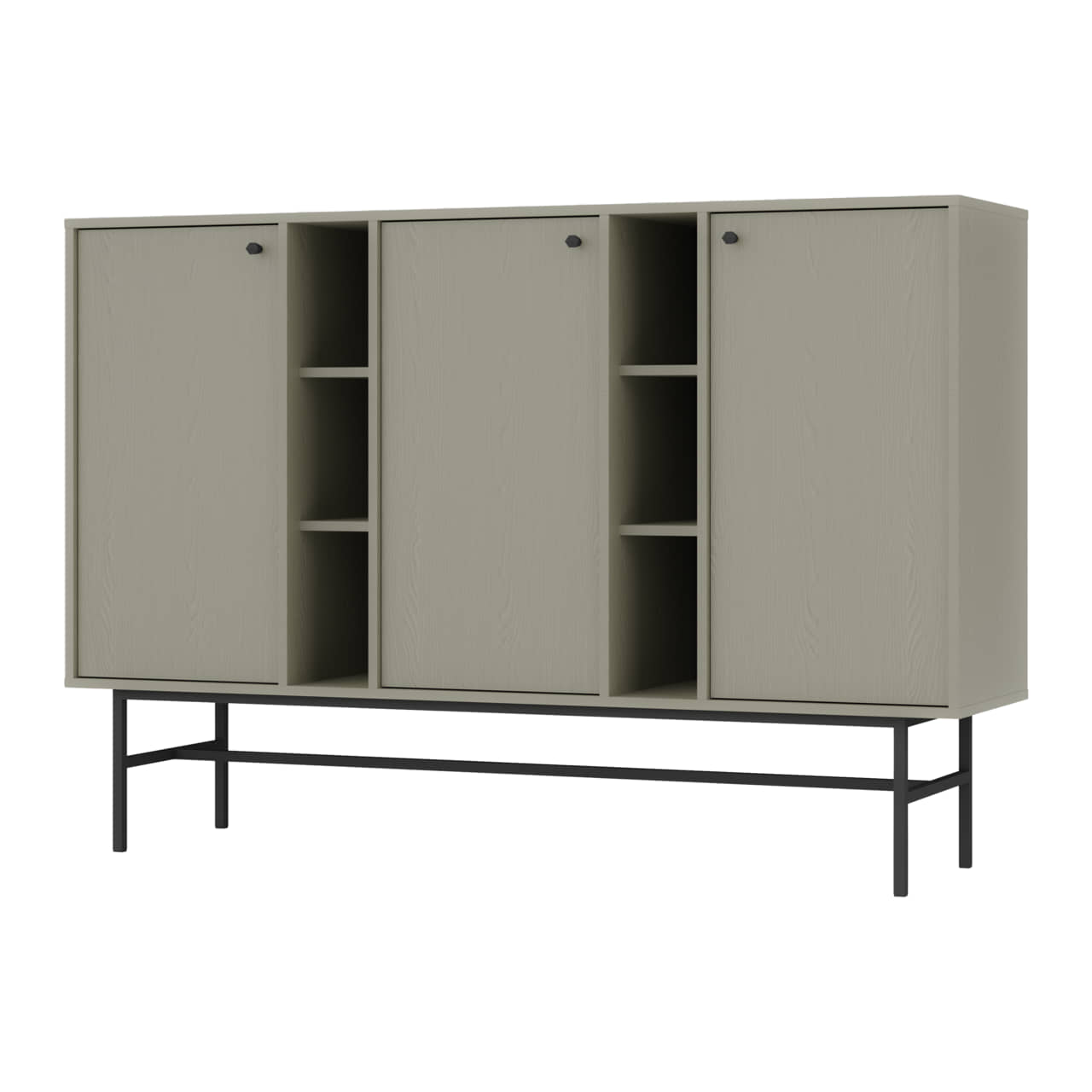 Komoda 3FO wyposażona została w trzy fronty rozchylne oraz półki otwarte.