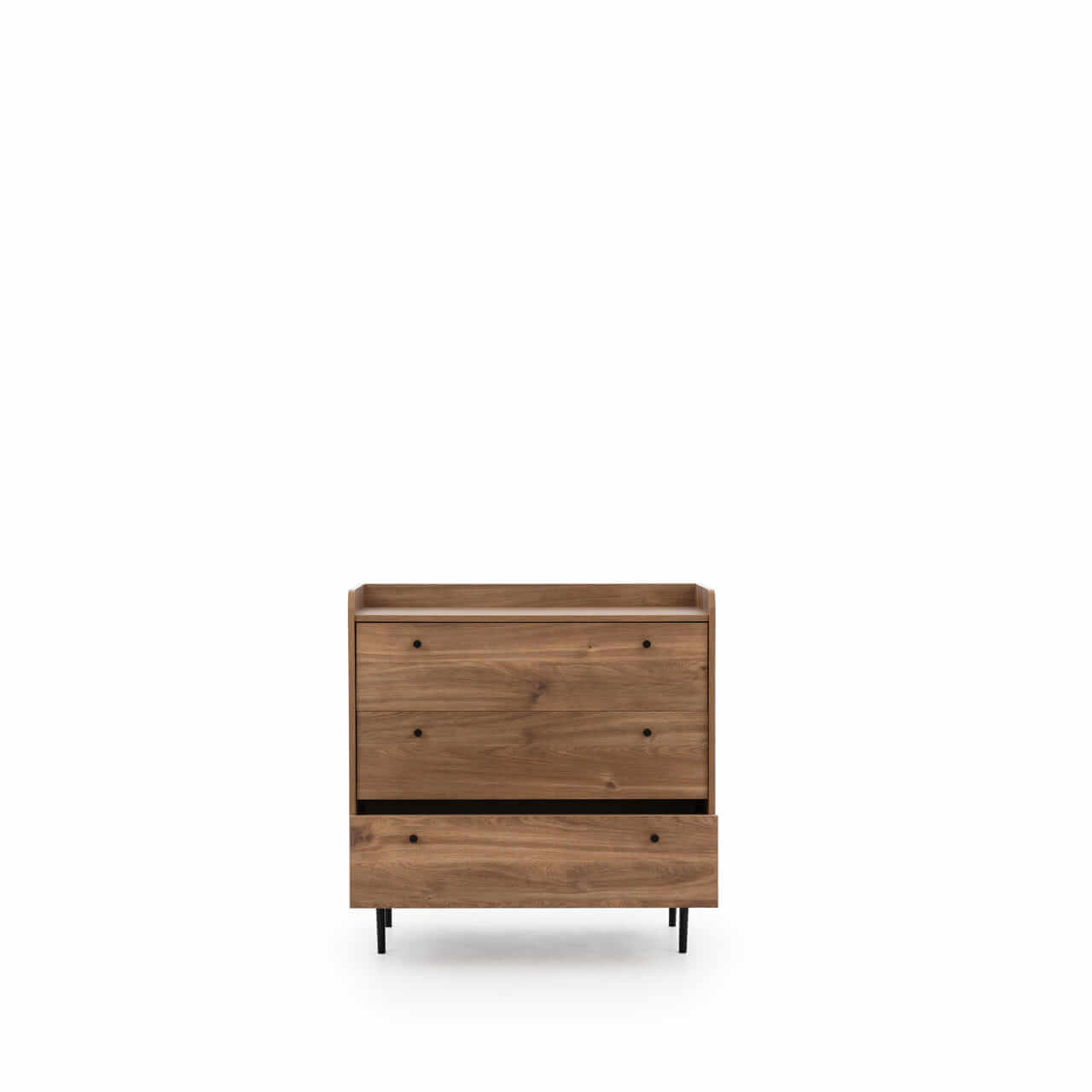 Kolekcja meblowa Vasina to połączenie nowoczesnej elegancji z naturalnym urokiem drewna. Meble charakteryzują się minimalistycznym designem, subtelnymi detalami i wysokiej jakości materiałami. Ciepłe wybarwienie drewna podkreśla przytulny charakter kolekcji, a smukłe metalowe nóżki nadają jej lekkości i współczesnego stylu.