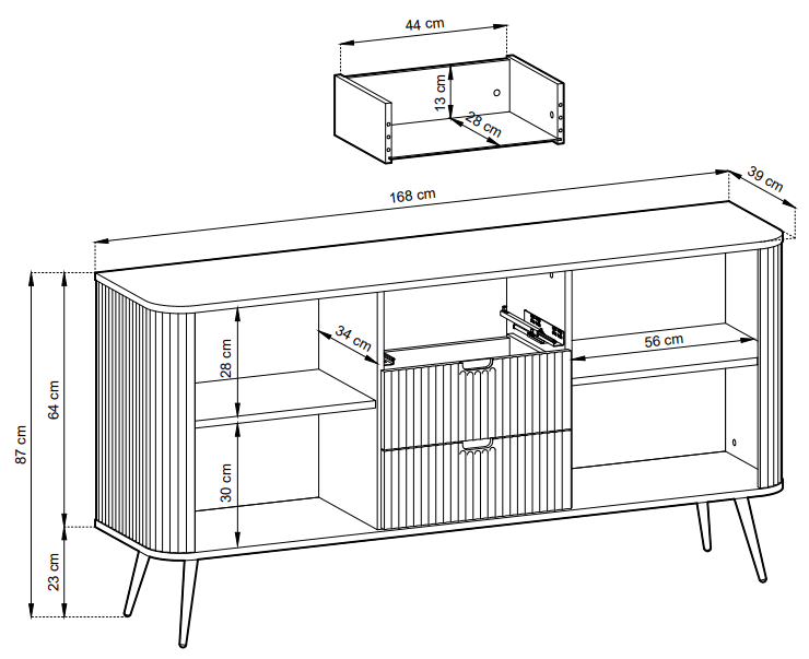 ✔ Subtelne detale – delikatnie wbudowane uchwyty i smukłe, metalowe nóżki nadają lekkości całej konstrukcji.