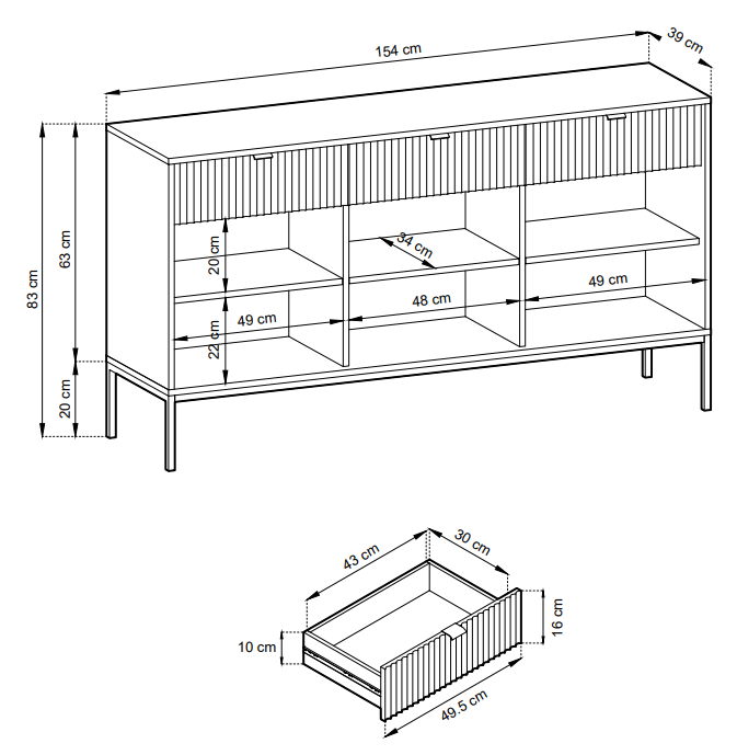 Komoda trzydrzwiowa z szufladami Nova KSZ-154 biały