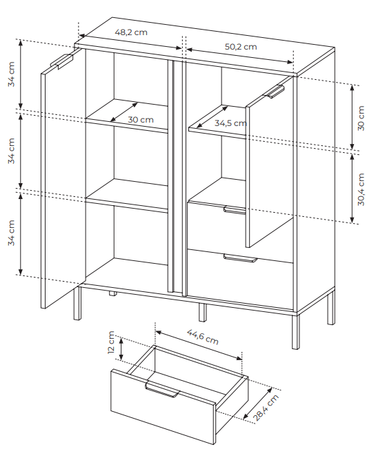 - Prowadnice szuflad: kulkowe, pełen wysuw z domykiem