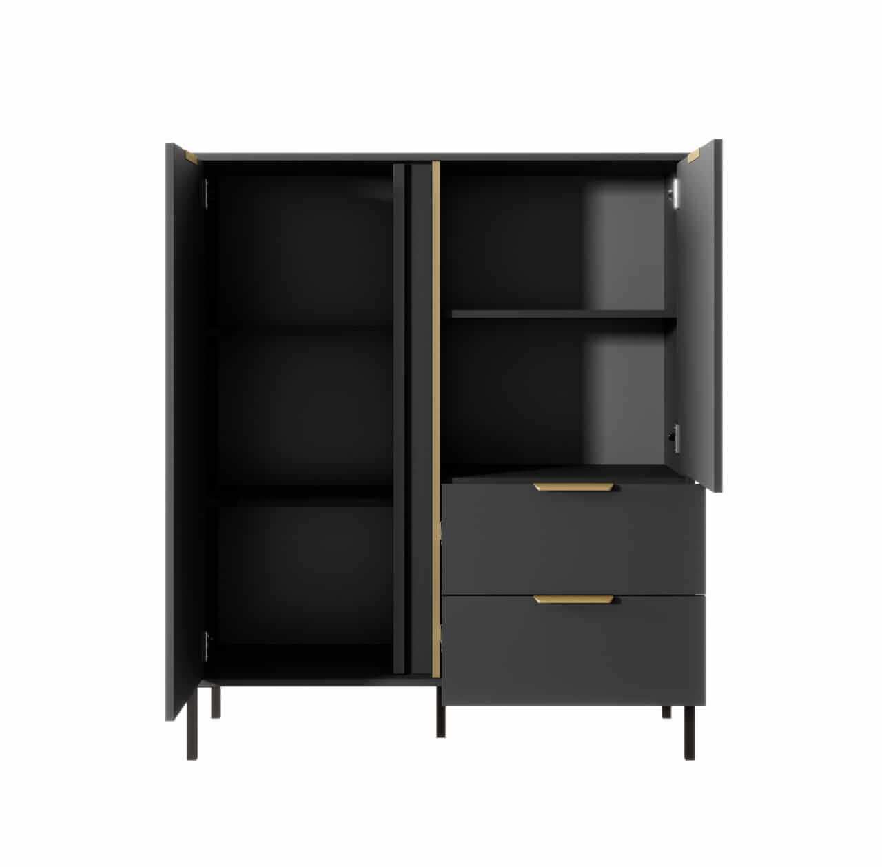 Kolekcja LARS to niezwykłe połączenie smaku, stylu i szyku, które przypadnie do gustu nawet najbardziej wymagającym klientom. Klasyczny antracyt wzbogacony został złotym obrzeżem ABS na przegrodzie i złotymi uchwytami, co dodaje meblom elegancji i niepowtarzalnego stylu. Z kolekcją LARS z łatwością urządzisz modny i funkcjonalny salon.