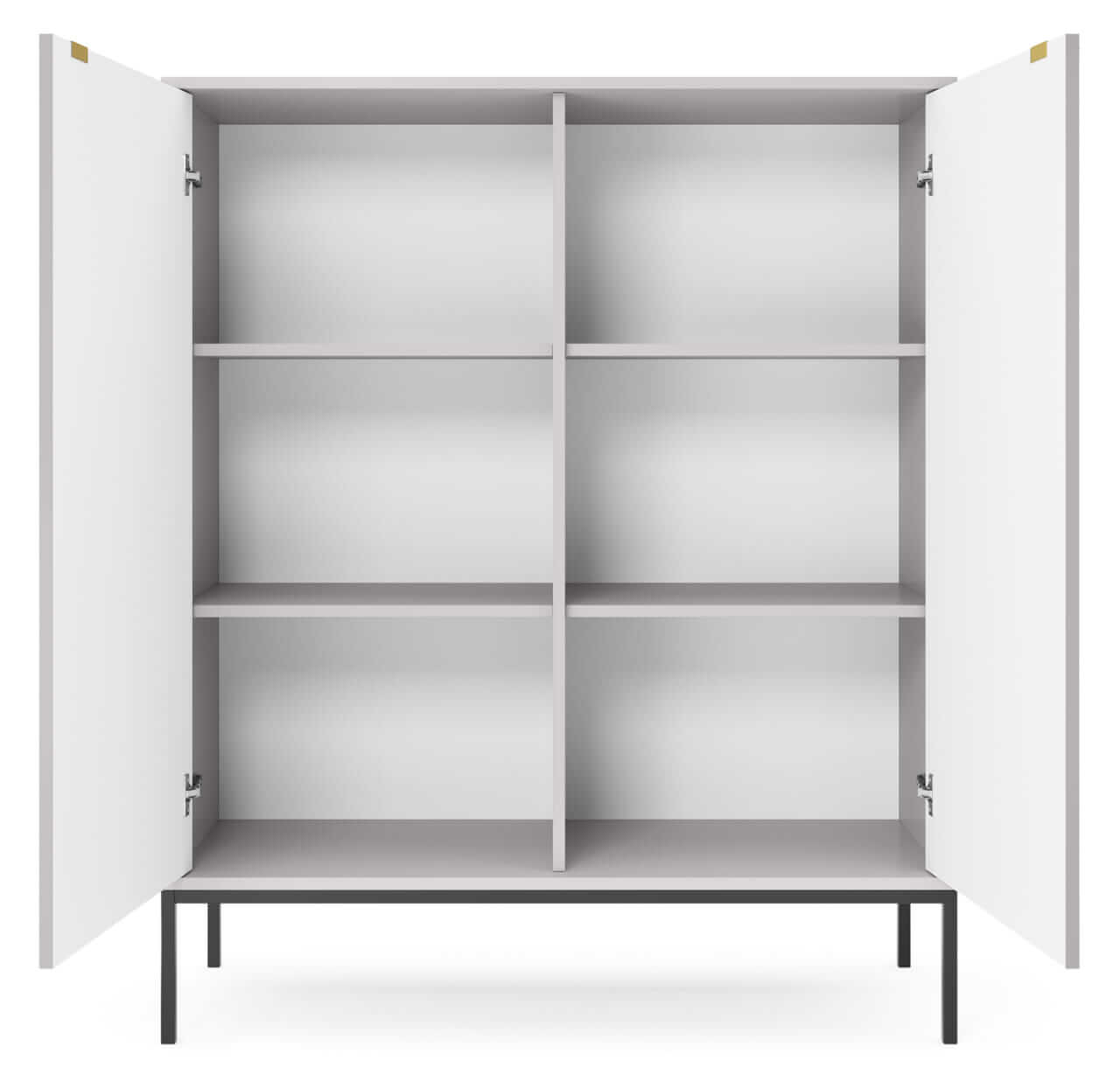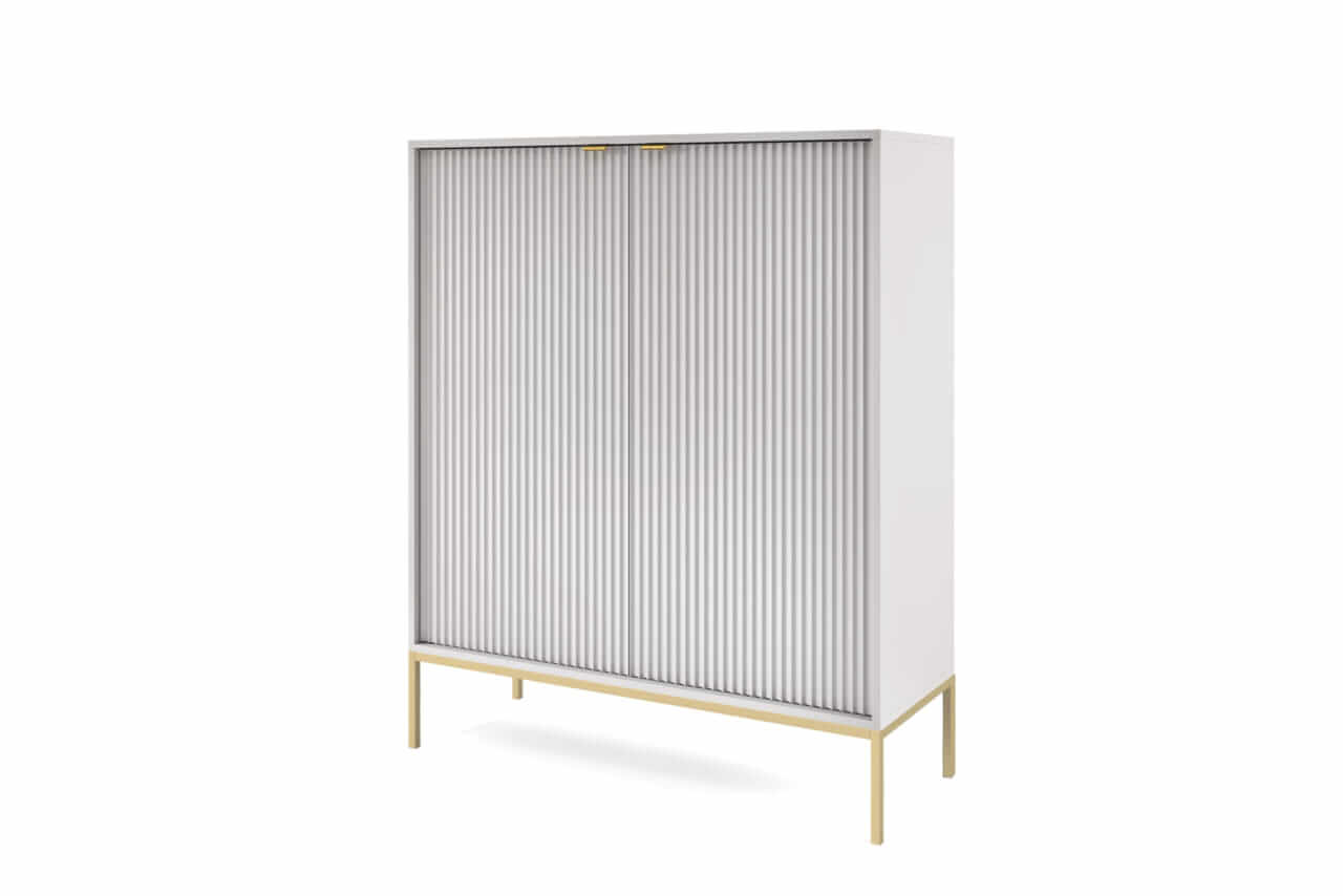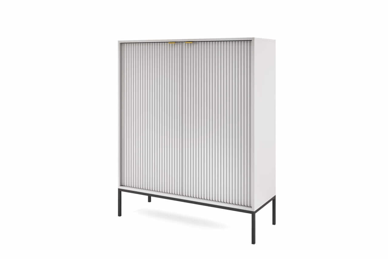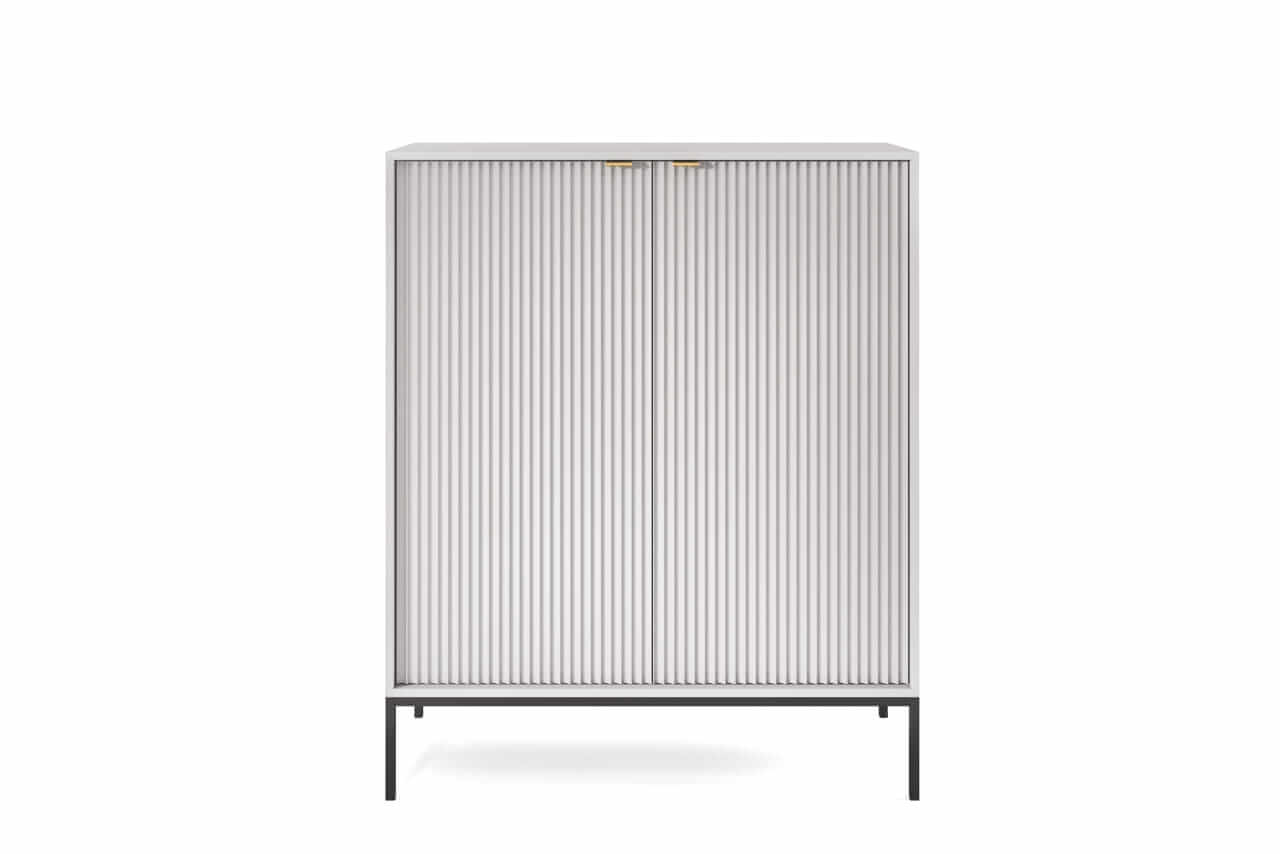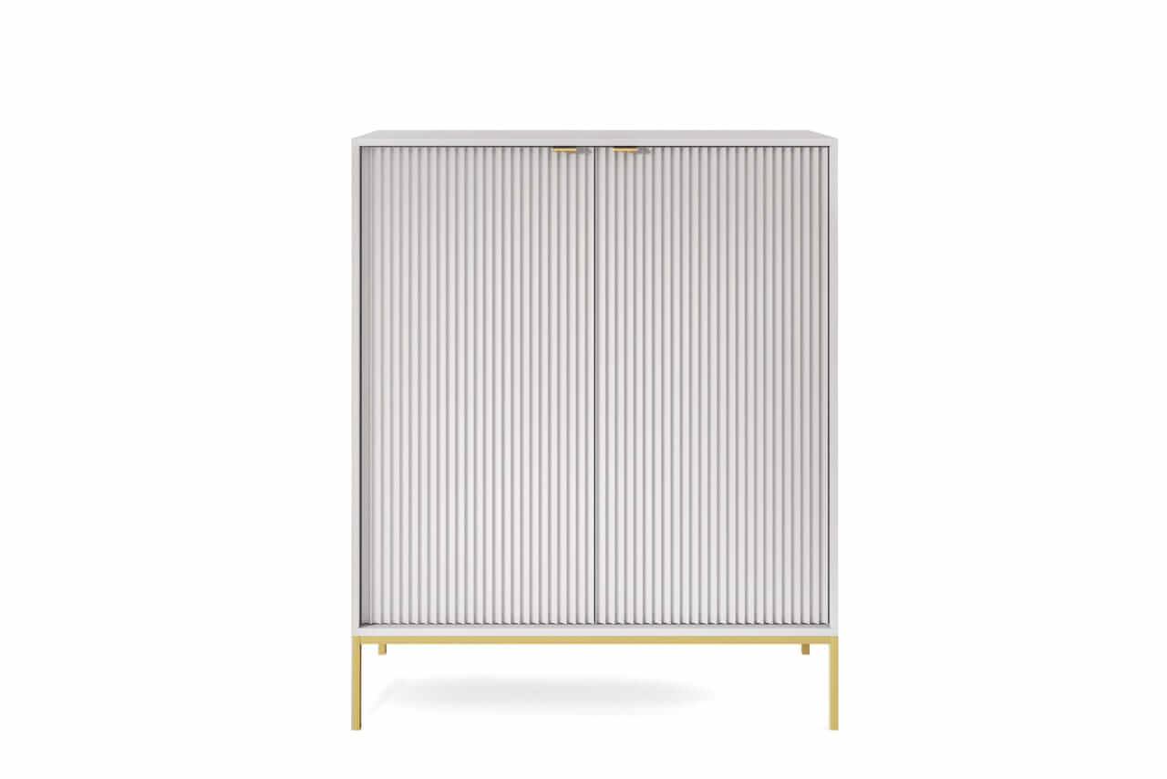 Kolekcja mebli Nova to nowoczesne połączenie funkcjonalności i minimalistycznego designu, idealne do stylowych wnętrz. Charakteryzuje się jasną szarą kolorystyką, subtelnymi złotymi uchwytami oraz eleganckimi pionowymi żłobieniami na frontach. Smukłe, metalowe nóżki nadają meblom lekkości, a ich wysoka jakość wykonania zapewnia trwałość i wygodę użytkowania. Kolekcja obejmuje różnorodne elementy, takie jak komody, stoliki kawowe oraz szafki RTV, co pozwala na spójne urządzenie przestrzeni. Idealna dla osób ceniących prostotę, nowoczesność i harmonijne wnętrza.