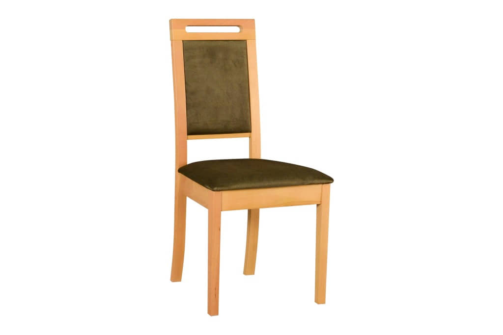 Krzesło drewniane Roma 15 z tapicerowanym siedziskiem oraz oparciem.