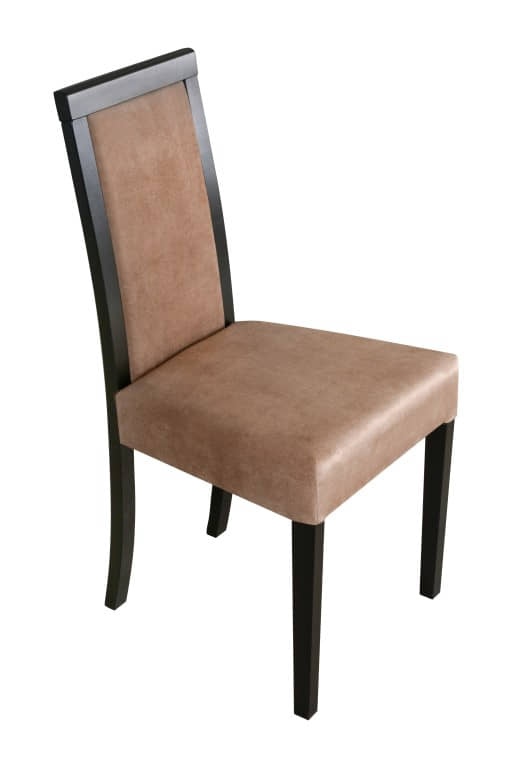 Krzesło drewniane Roma 3 z tapicerowanym siedziskiem oraz oparciem.