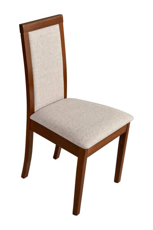 Krzesło drewniane Roma 4 z tapicerowanym siedziskiem oraz oparciem.