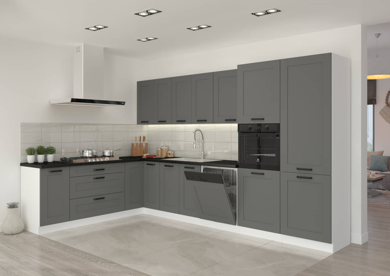 Kuchnia narożna z blatem Luna Dust Grey/biały 2,1m na 3,5m