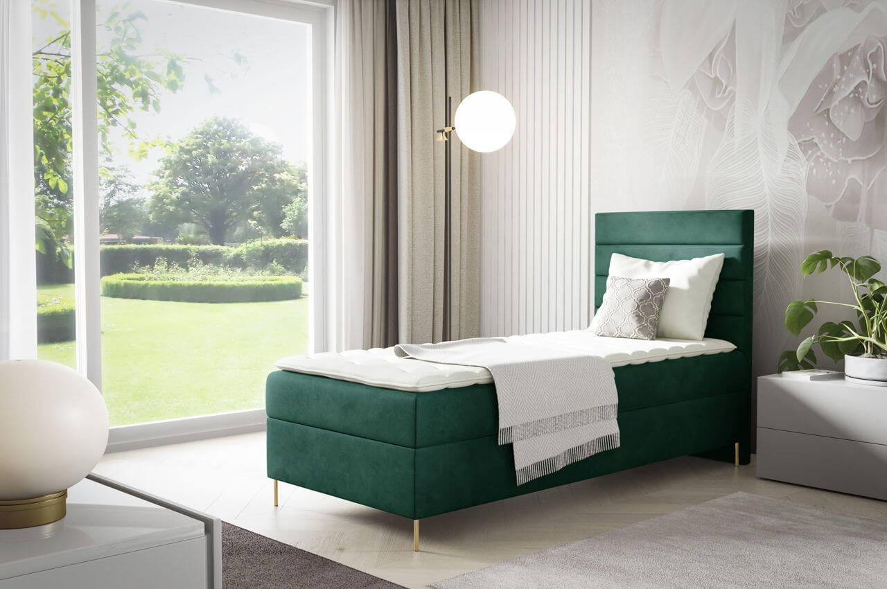 Łóżko kontynentalne na nóżkach Bino 90x200cm zieleń - tkanina Riviera 38