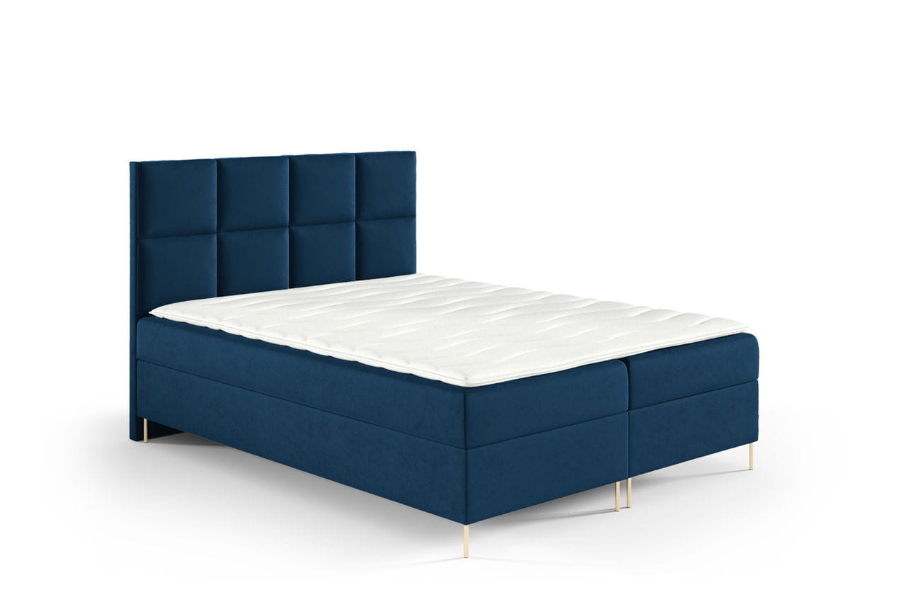 Łóżko kontynentalne na nóżkach Kleo 160x200cm granatowy - tkanina Riviera 81