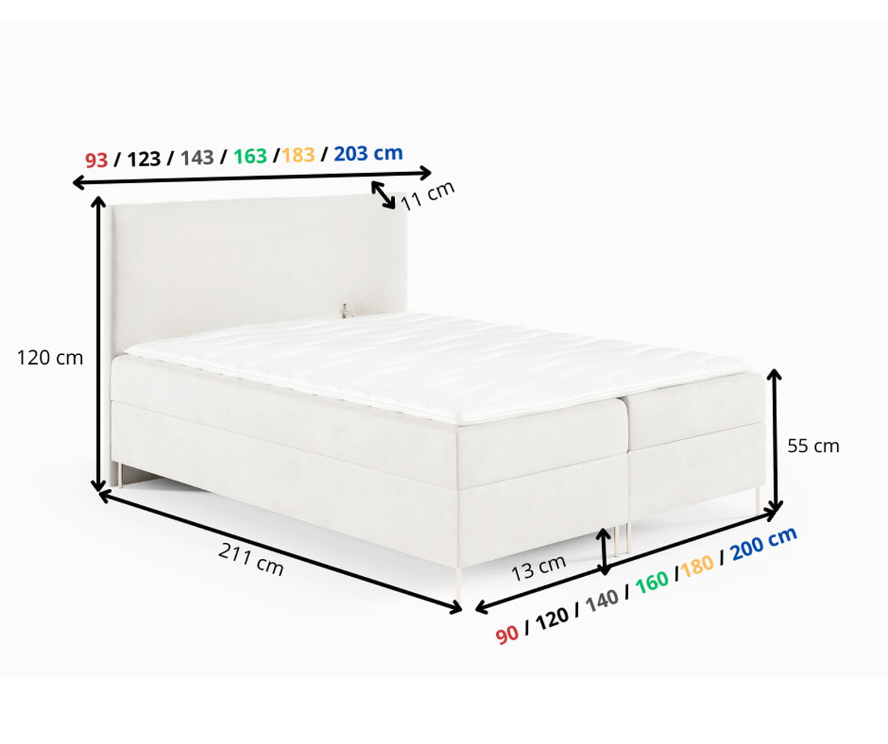 - Nóżki: zastosowane smukłe złote nóżki do łóżka kontynentalnego to stylowy detal, który nadaje meblowi elegancji i nowoczesnego charakteru.
