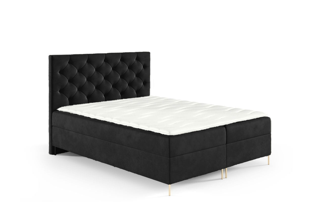 Łóżko kontynentalne na nóżkach Lara 140x200cm czarny - tkanina Riviera 100