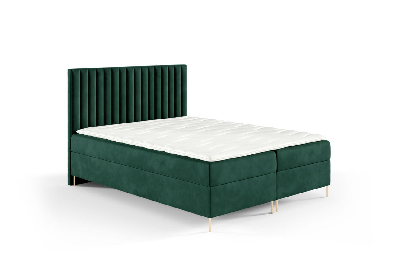 Łóżko kontynentalne na nóżkach Lira 140x200cm zieleń - tkanina Riviera 38