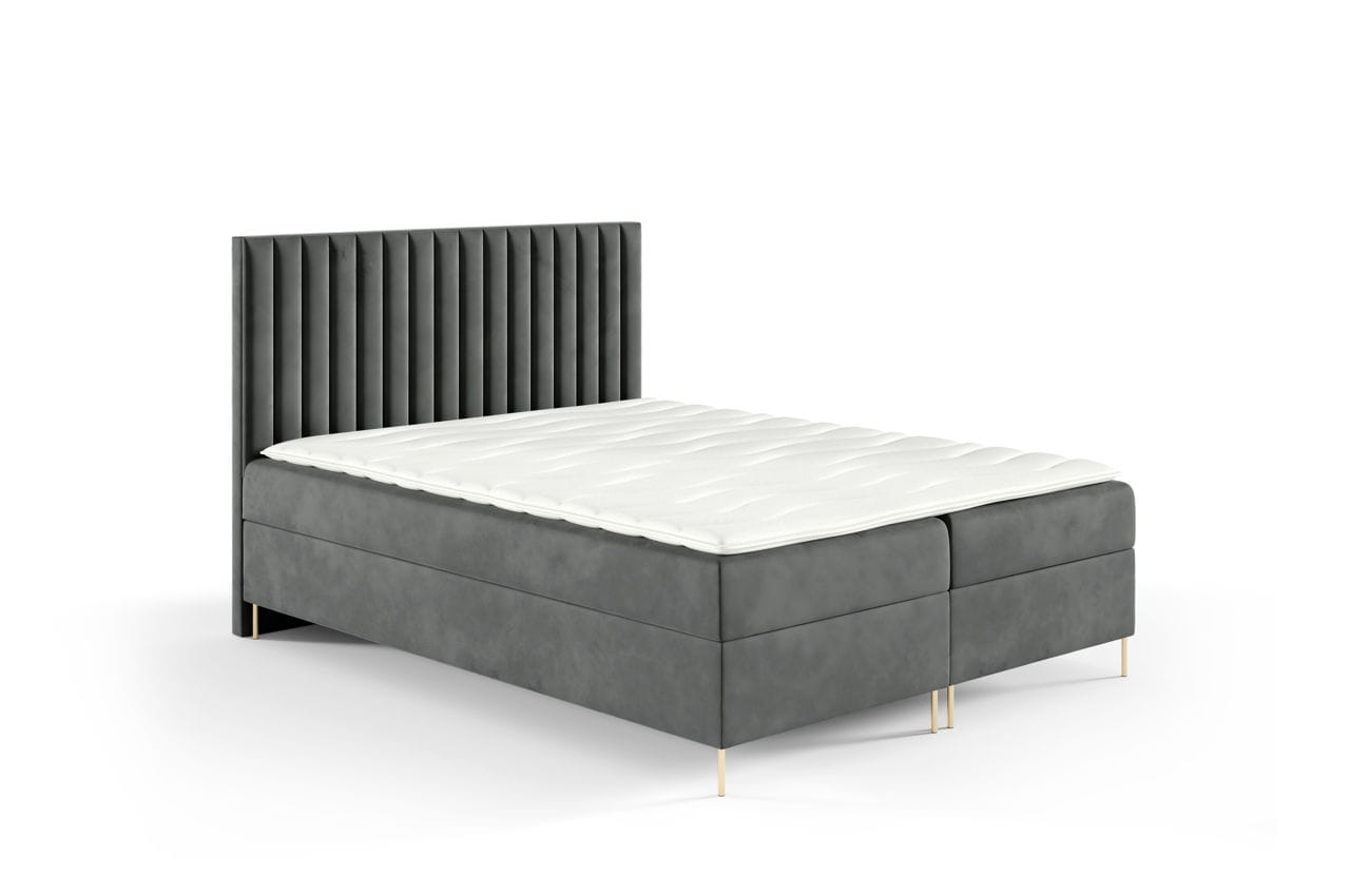 Łóżko kontynentalne na nóżkach Lira 200x200cm szary - tkanina Riviera 91