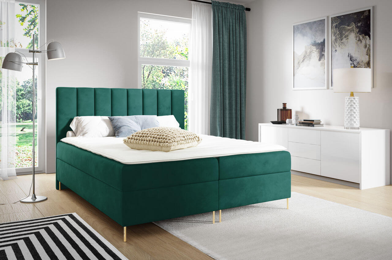 Łóżko kontynentalne na nóżkach Nila 160x200cm zieleń - tkanina Riviera 38