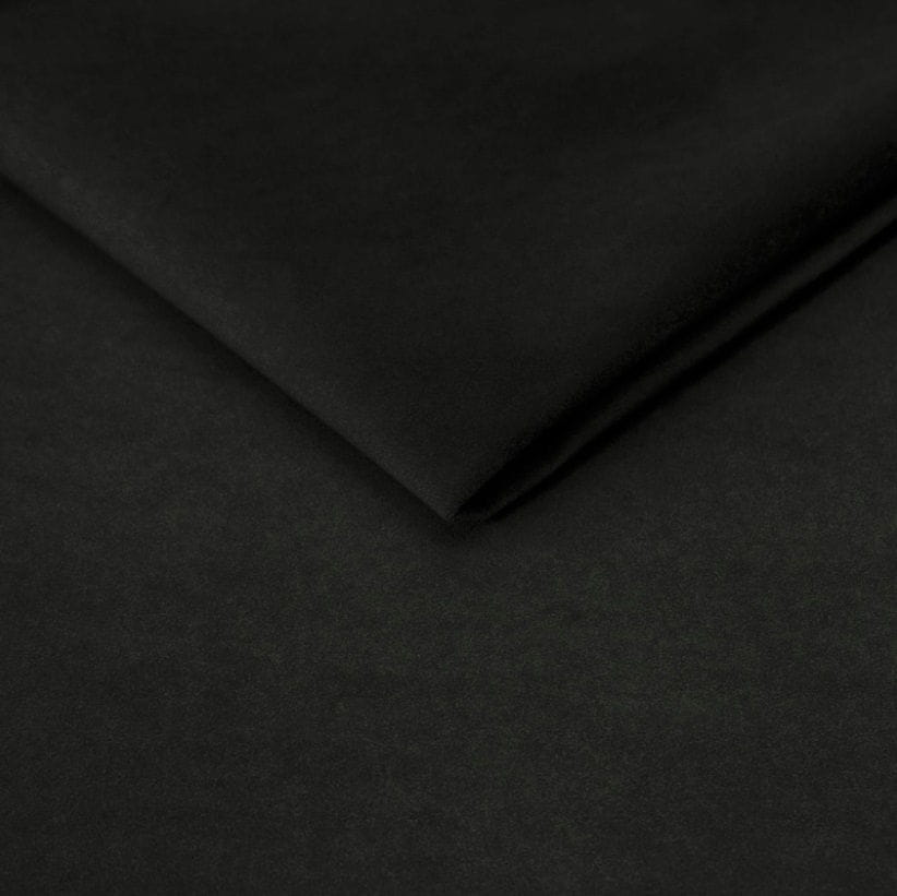 Tkanina: mebel wykonany w tkaninie Riviera 100 - czarny(gęsta tkanina typu velvet, połyskująca, aksamitna w dotyku. Znajduje się w grupie tkanin łatwoczyszczących. Posiada zwiększoną odporność, co zapobiega mechaceniu się materiału).