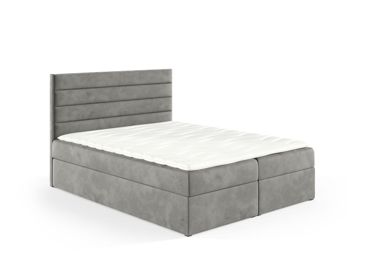 Łóżko kontynentalne z pojemnikiem Bino 180x200cm szary - tkanina Riviera 91