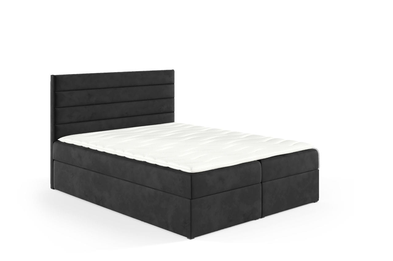 Łóżko kontynentalne z pojemnikiem Bino 200x200cm czarny - tkanina Riviera 100